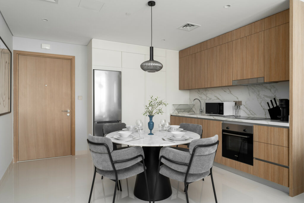 haus & haus holiday is delighted to offer this elegant 1 Bedroom apartment in Binghatti Emerald, Jumeirah Village Circle.This holiday retreat offers tranquil and sophisticated spaces to connect, share, and grow. A perfect place designed to cater your lifestyle; a comfort you can call home. Highl...