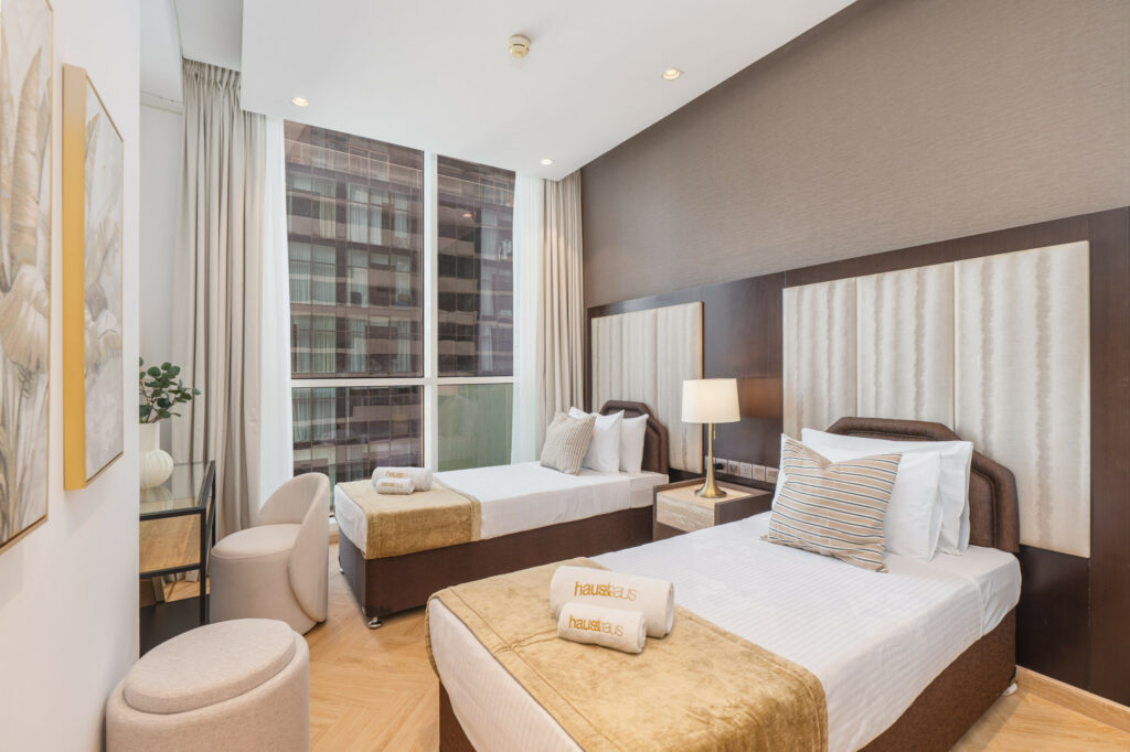 haus & haus holiday is delighted to present this stylish 2-Bedroom Apartment in DAMAC Upper Crest, ideally located in the heart of Downtown Dubai.