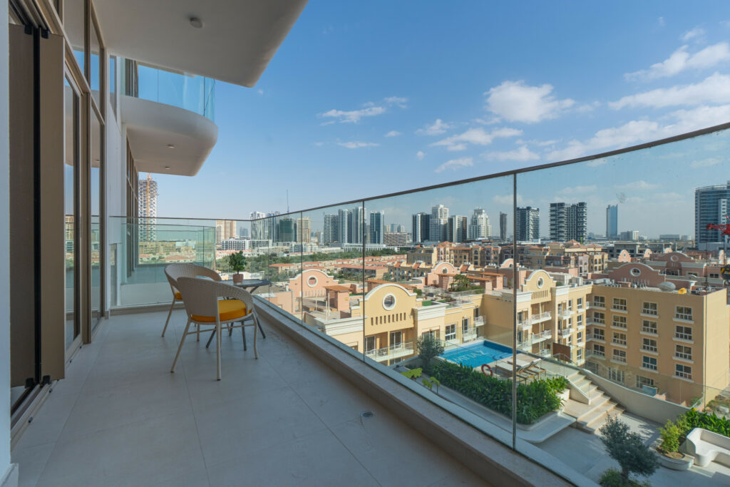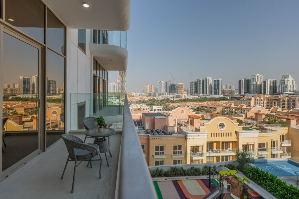• Balcony with direct views of the swimming pool, BBQ area, and kids’ play area