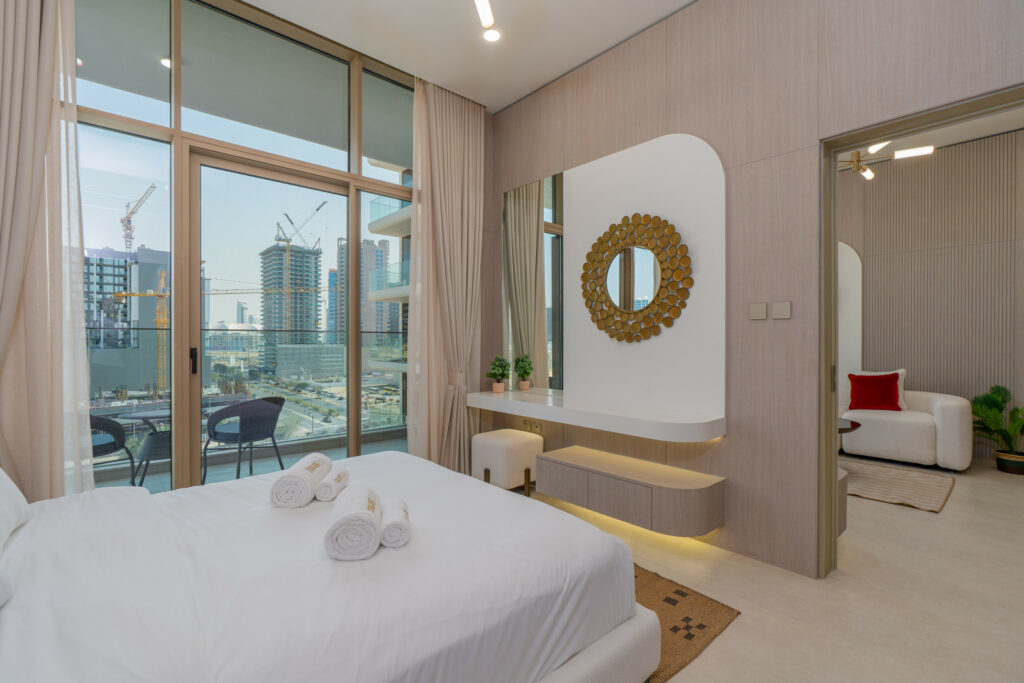 haus & haus holiday is delighted to present this brand-new 1-Bedroom Apartment in Pearl House II, Jumeirah Village Circle (JVC).