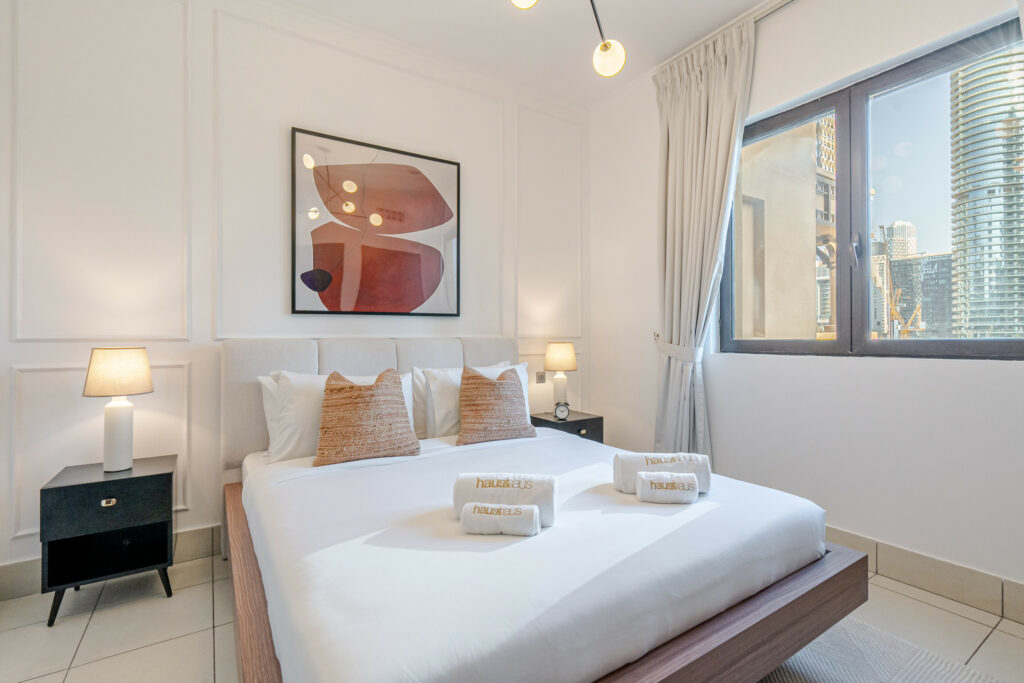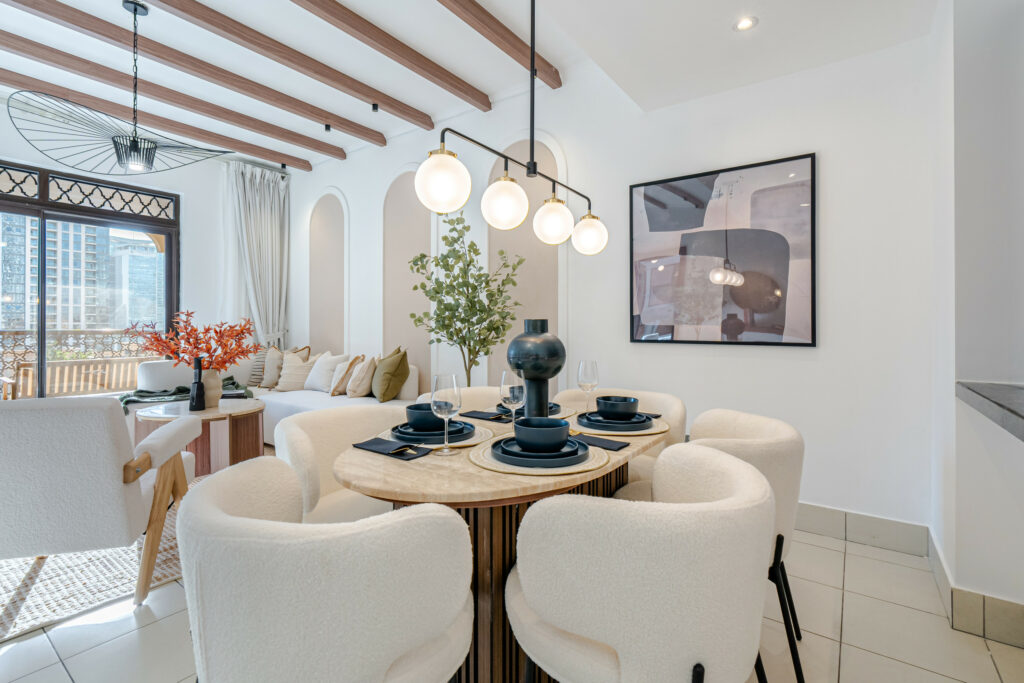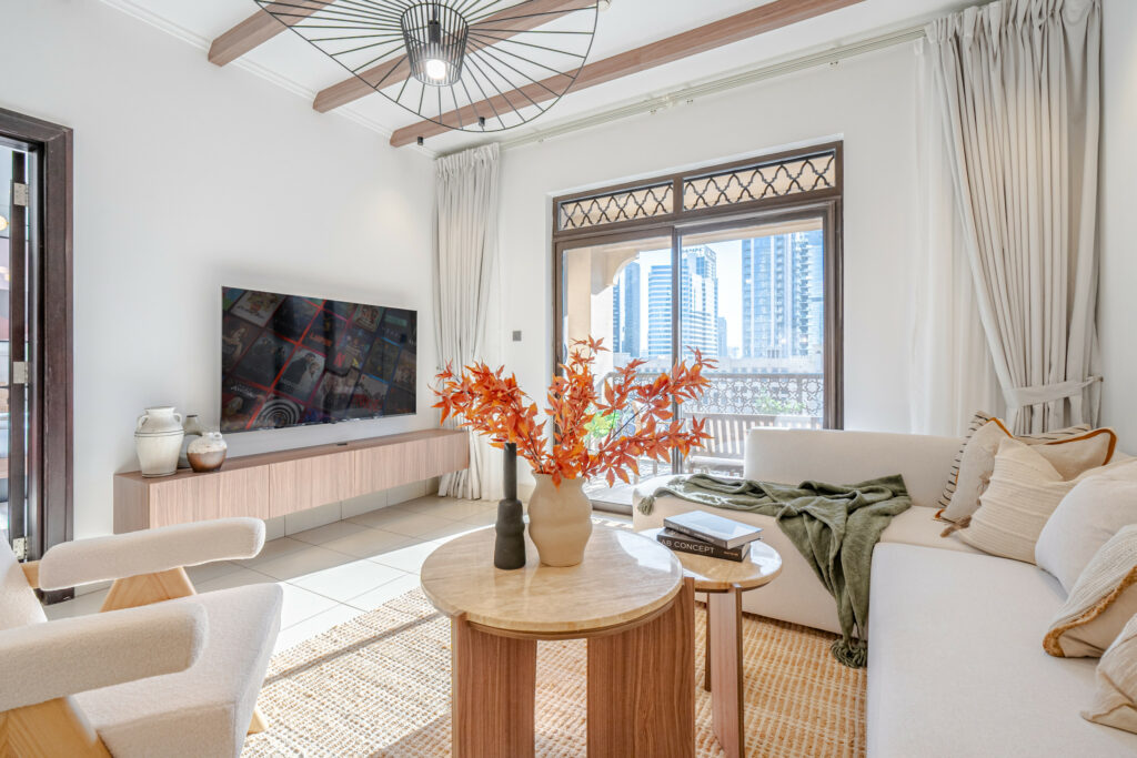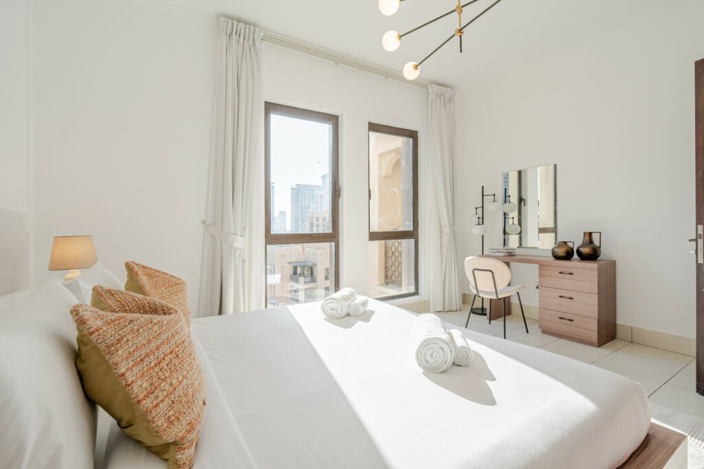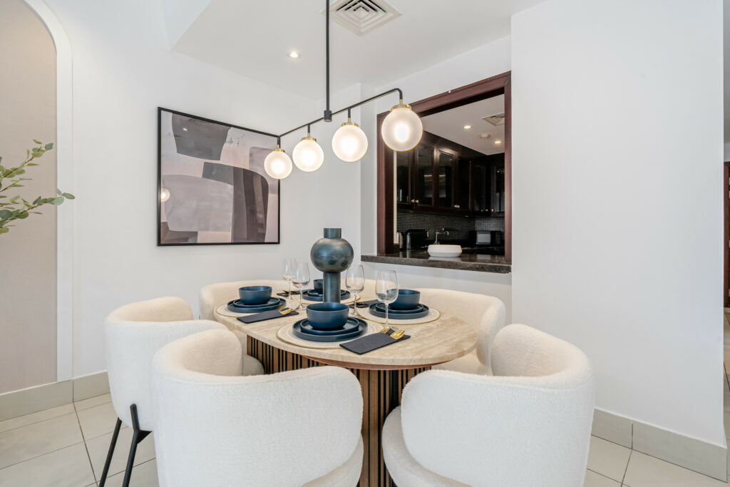 Step into your delightful holiday retreat in Old Town Dubai, where modern interiors beautifully harmonize with the community’s timeless Arabian-inspired architecture. Nestled in the heart of the city and surrounded by iconic landmarks like the Burj Khalifa, this residence offers a serene escape from the vibrant energy of urban life.
