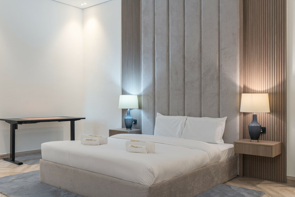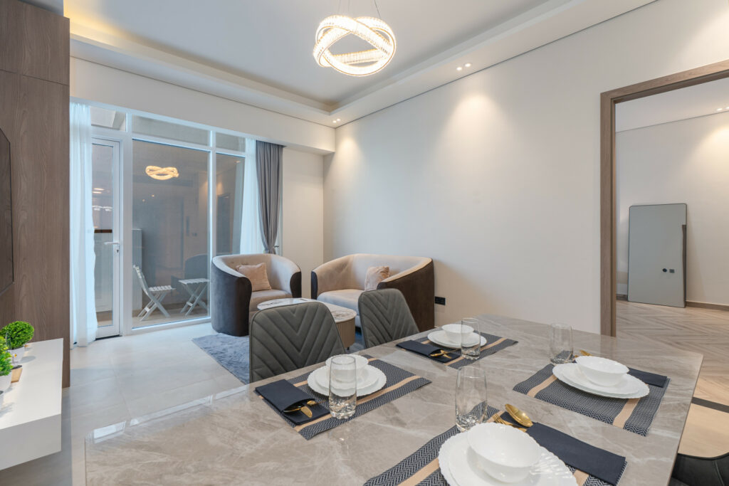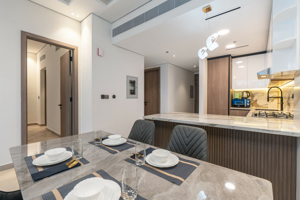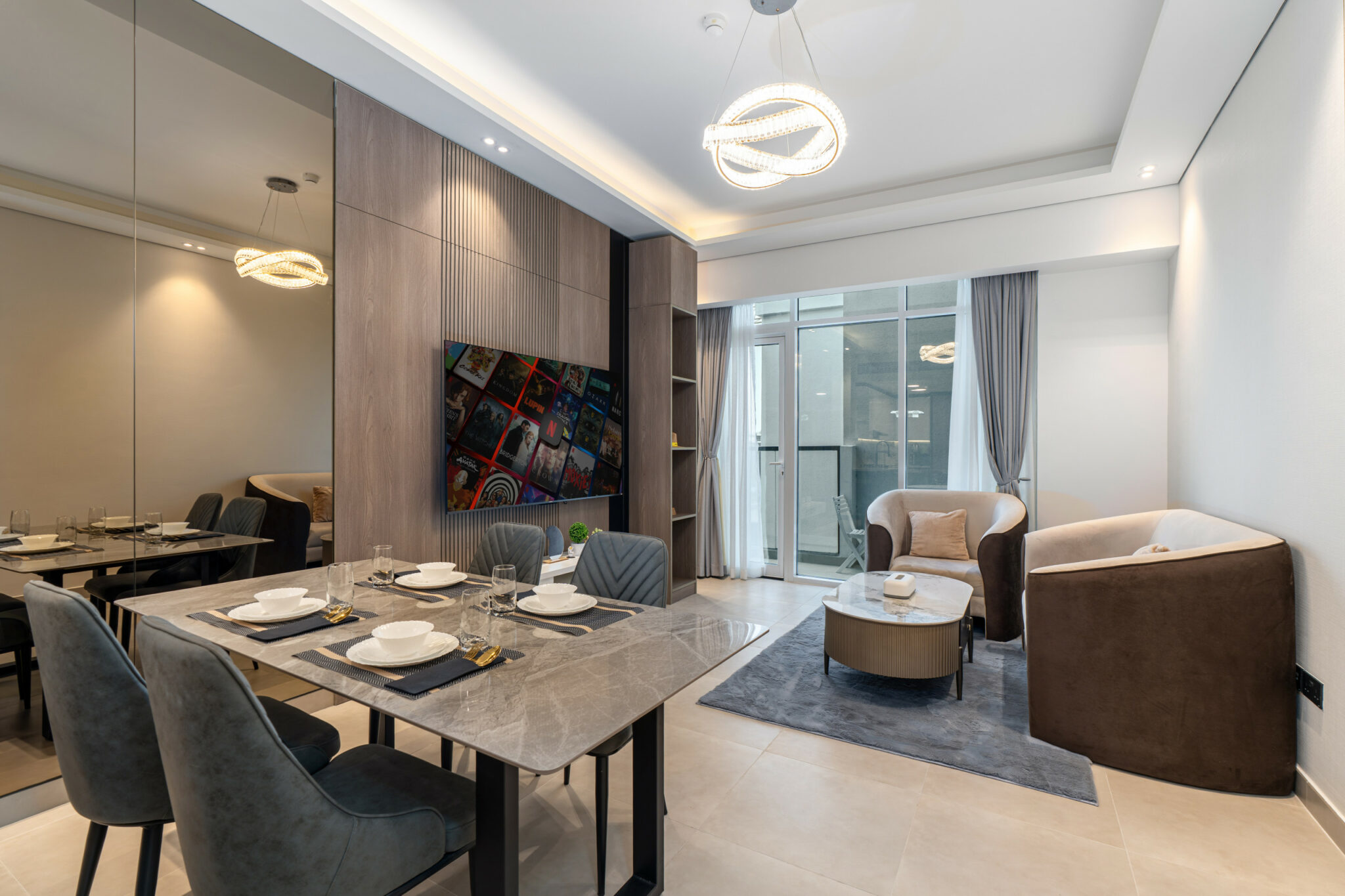 haus & haus holiday is pleased to showcase this fully furnished 1 Bedroom Apartment in 555 Park View, Jumeirah Village Triangle.