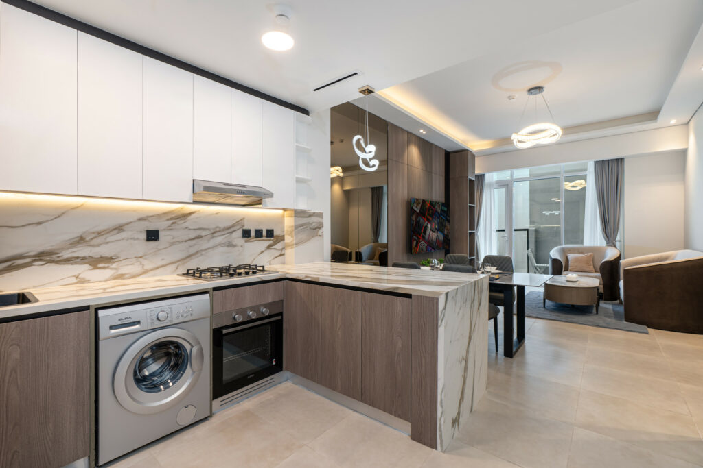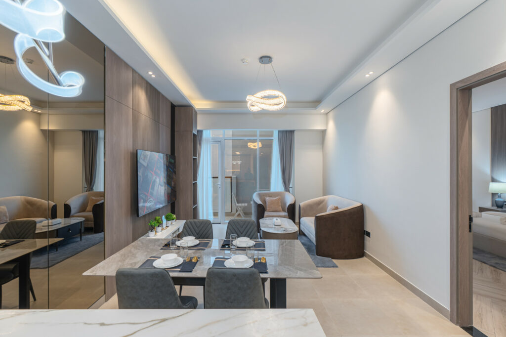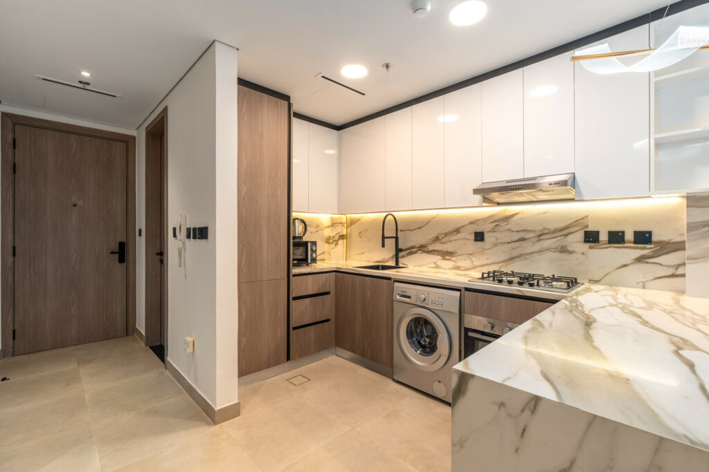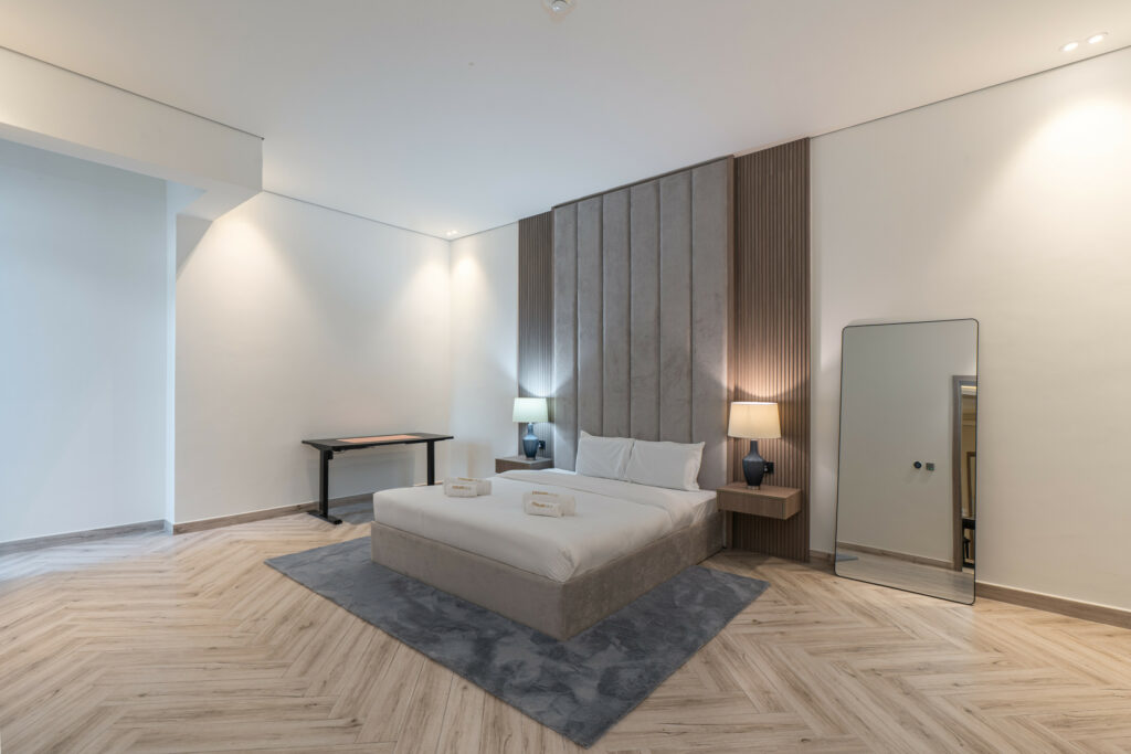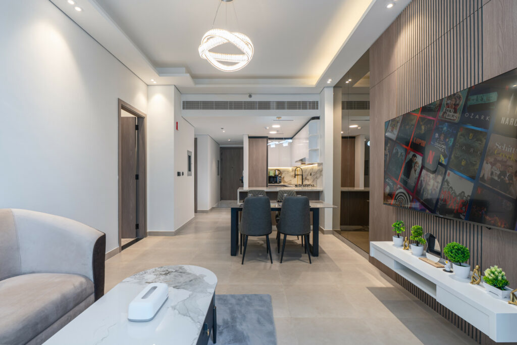 haus & haus holiday is pleased to showcase this fully furnished 1 Bedroom Apartment in 555 Park View, Jumeirah Village Triangle.