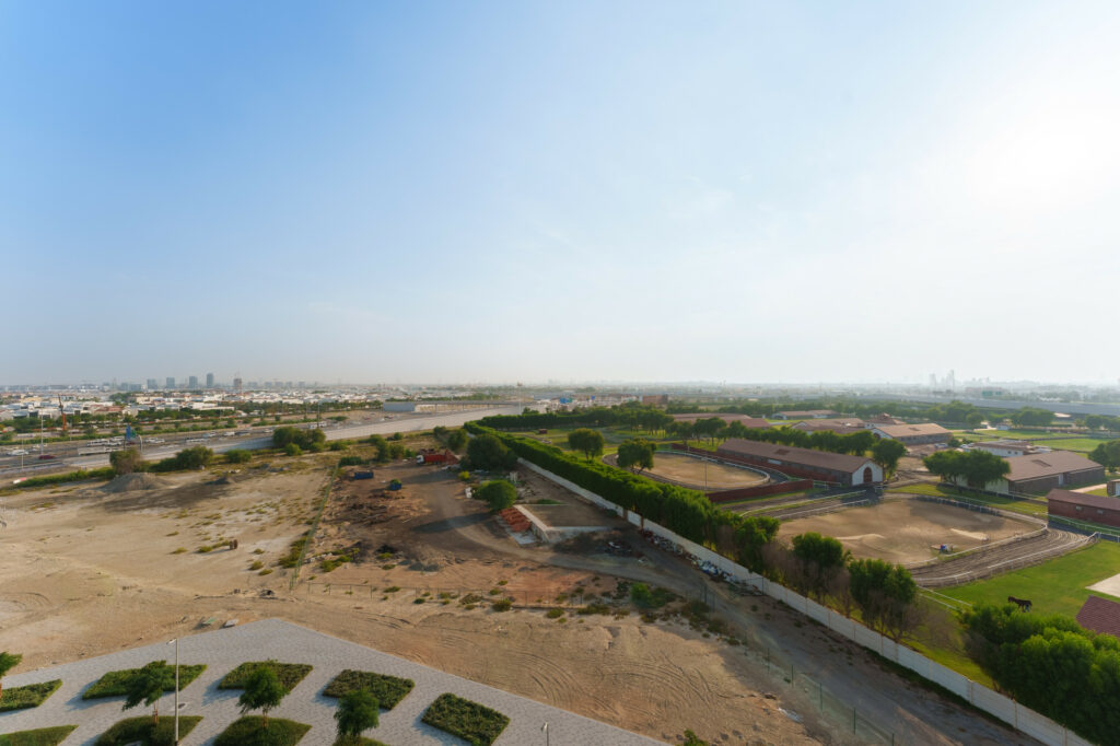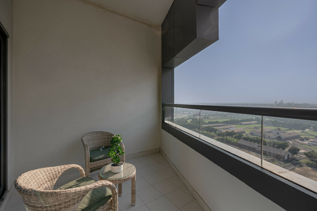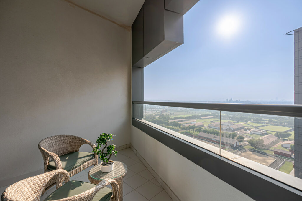 • Lovely Burj Al Arab skyline, stables, and pool view from the balcony