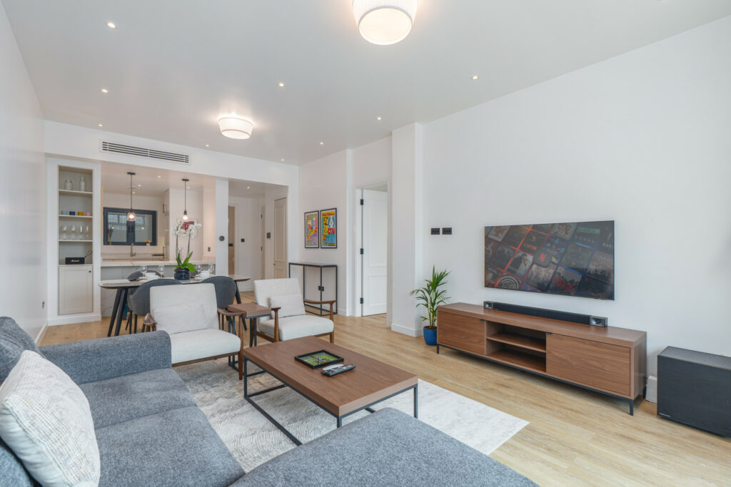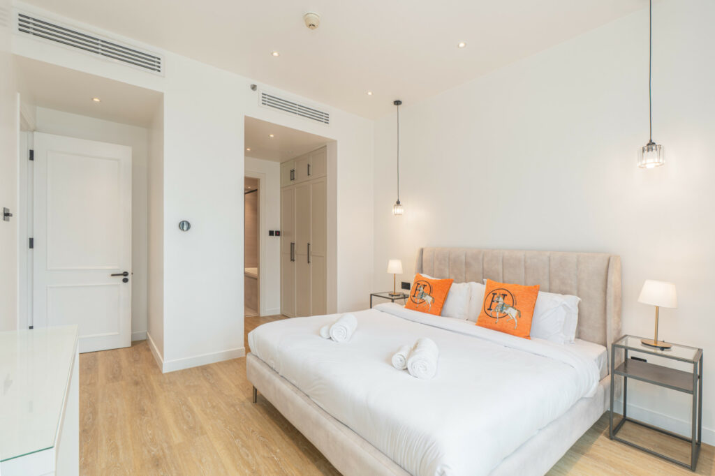 • Stylish bedroom with built-in wardrobes and king-sized bed