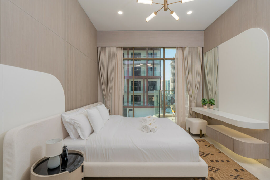 haus & haus holiday is delighted to present this brand-new 1-Bedroom Apartment in Pearl House II, Jumeirah Village Circle (JVC).