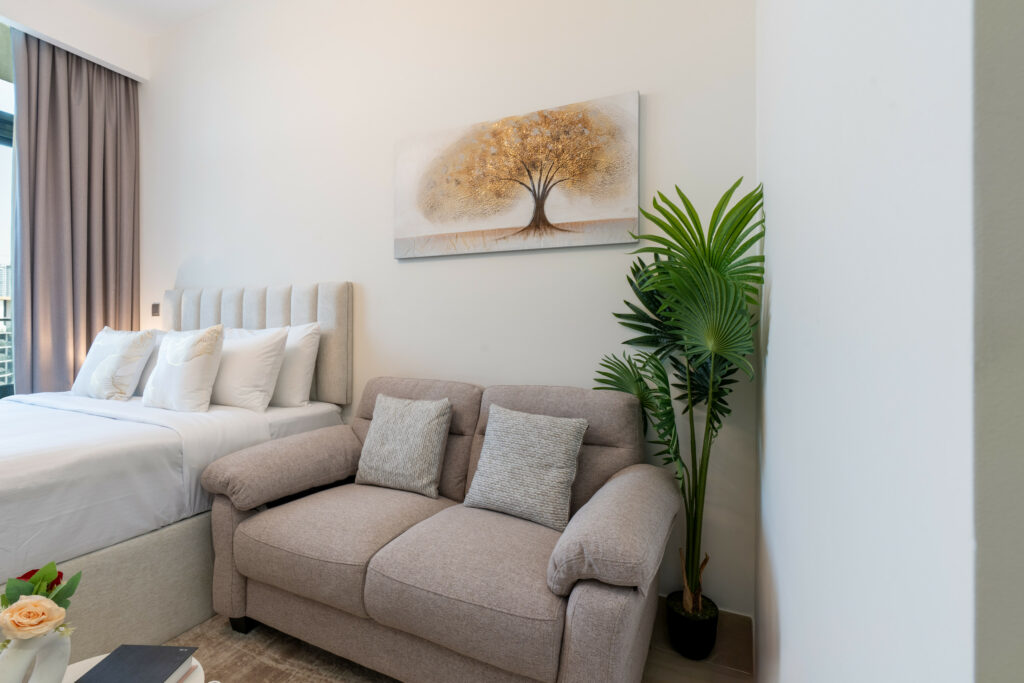 haus & haus holiday is pleased to offer this contemporary Studio Apartment in Azizi Riviera 1, Meydan.This holiday home effortlessly blends cosy i...
