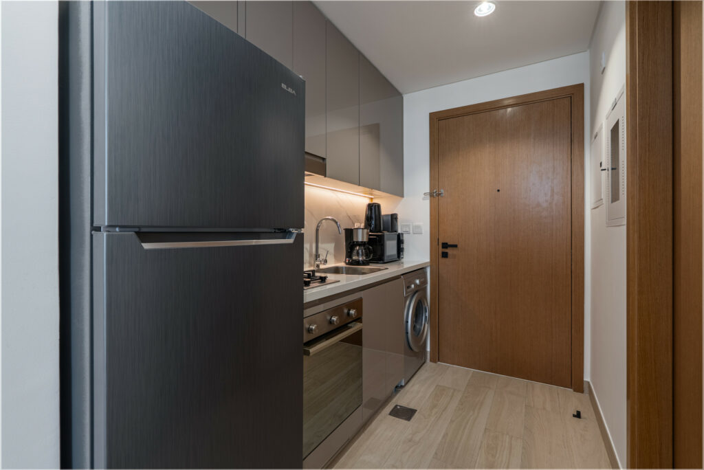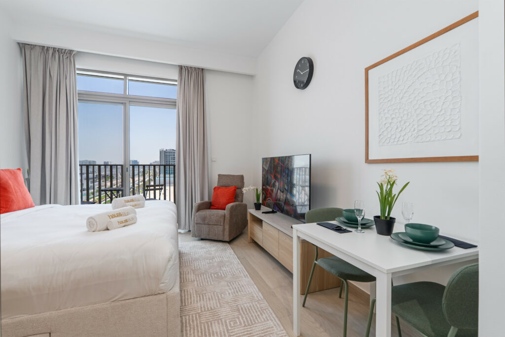 haus & haus holiday proudly presents this stylish Studio Apartment in Azizi Amber, Al Furjan, offering serene views of the sparkling pool below. Thoughtfully designed with modern finishes and a warm, inviting ambiance, this cosy space is perfect for solo travellers or couples seeking comfort and convenience.