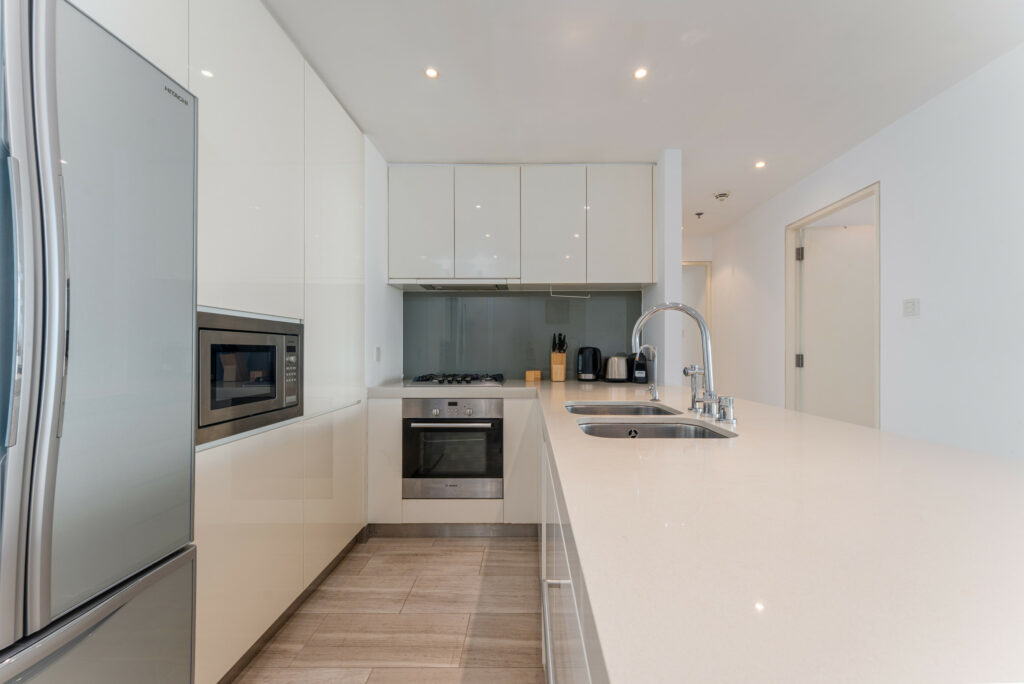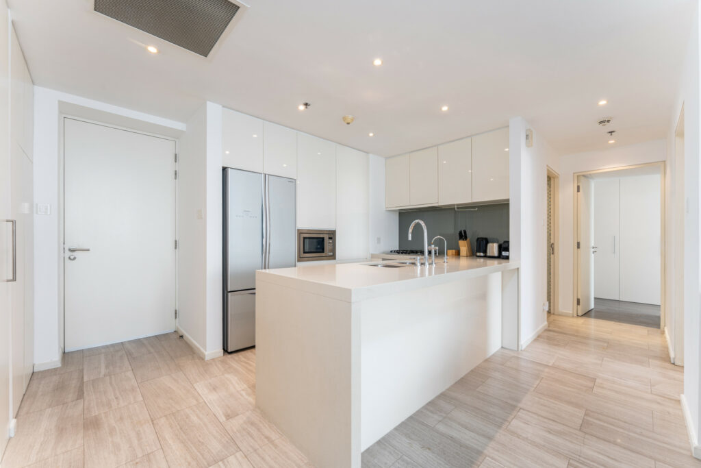 • Design – contemporary apartment with tastefully appointed interiors, fitted kitchen, spacious bathrooms