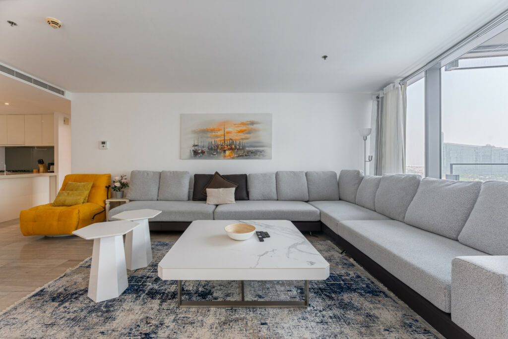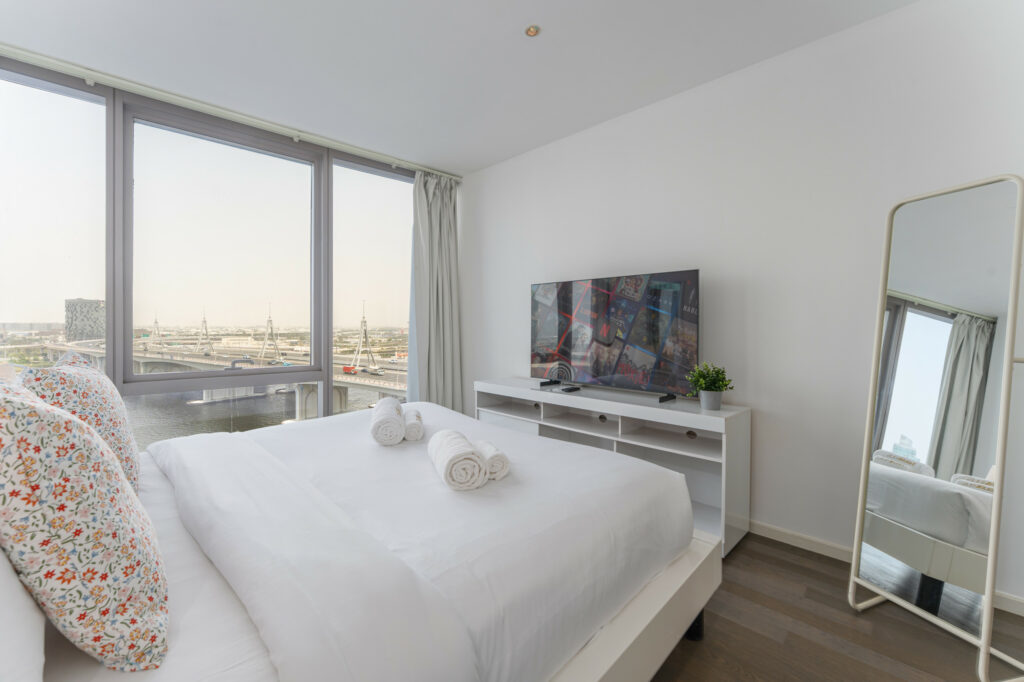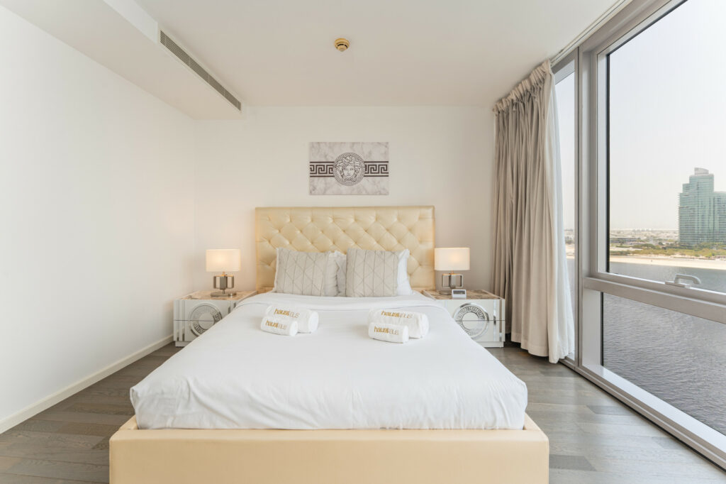 haus & haus holiday proudly presents this chic and contemporary 2-bedroom holiday apartment in the iconic D1 Tower, Al Jaddaf.