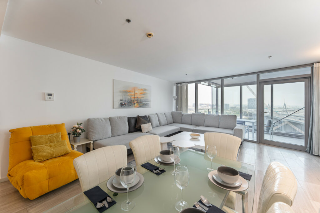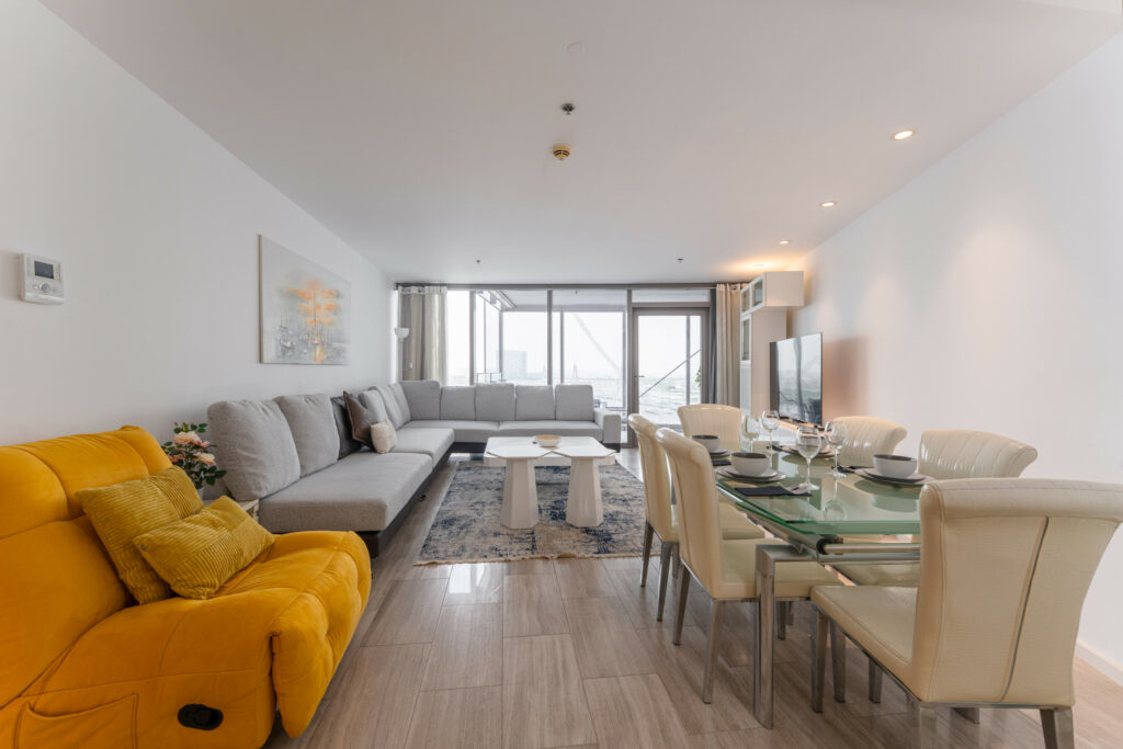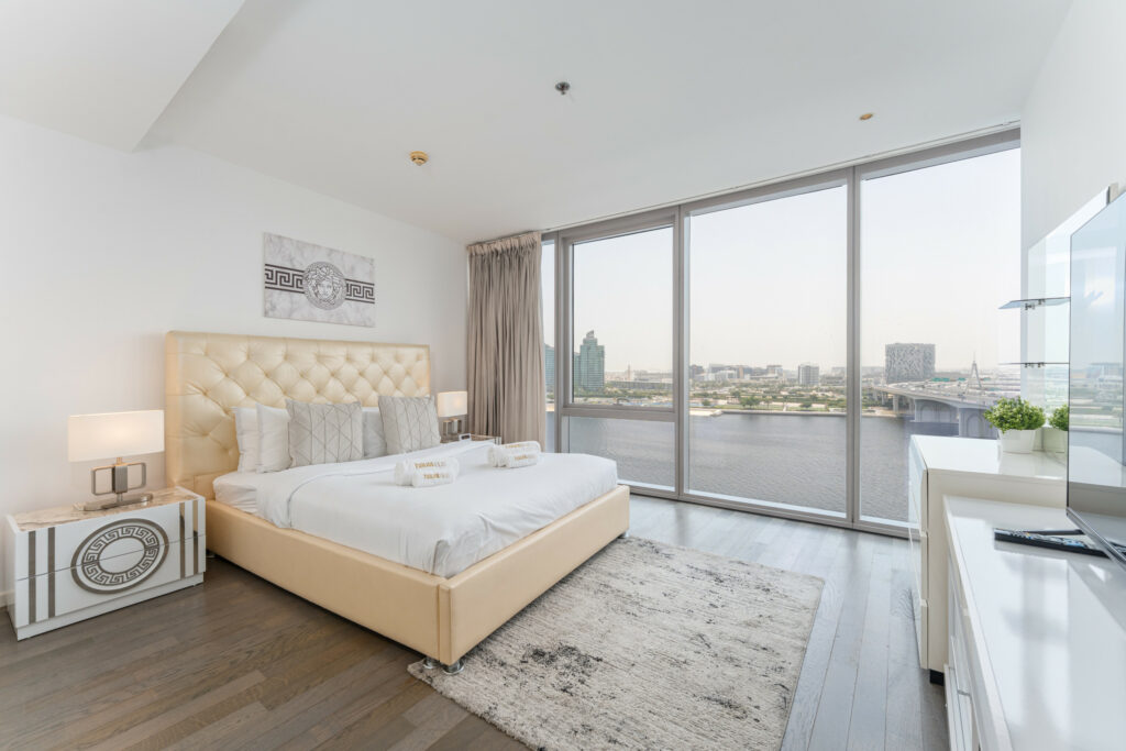 Perched on a high floor next to the tranquil Dubai Creek, this home blends modern design with upscale comforts.