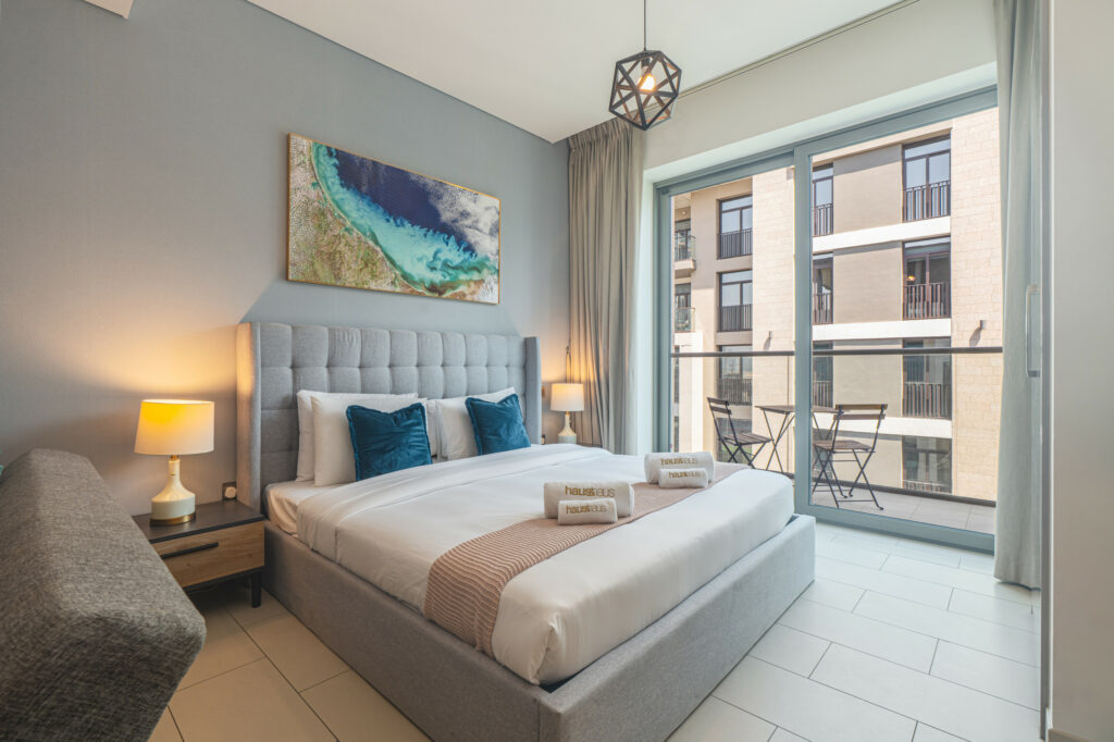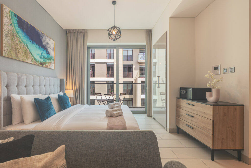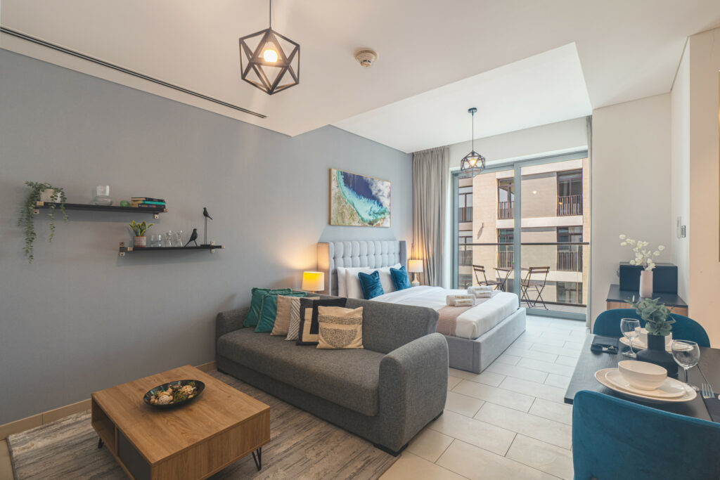 haus & haus holiday is delighted to present this elegant Studio Apartment in Sobha Hartland Greens, a refined community at the heart of Mohammed Bin Rashid City.