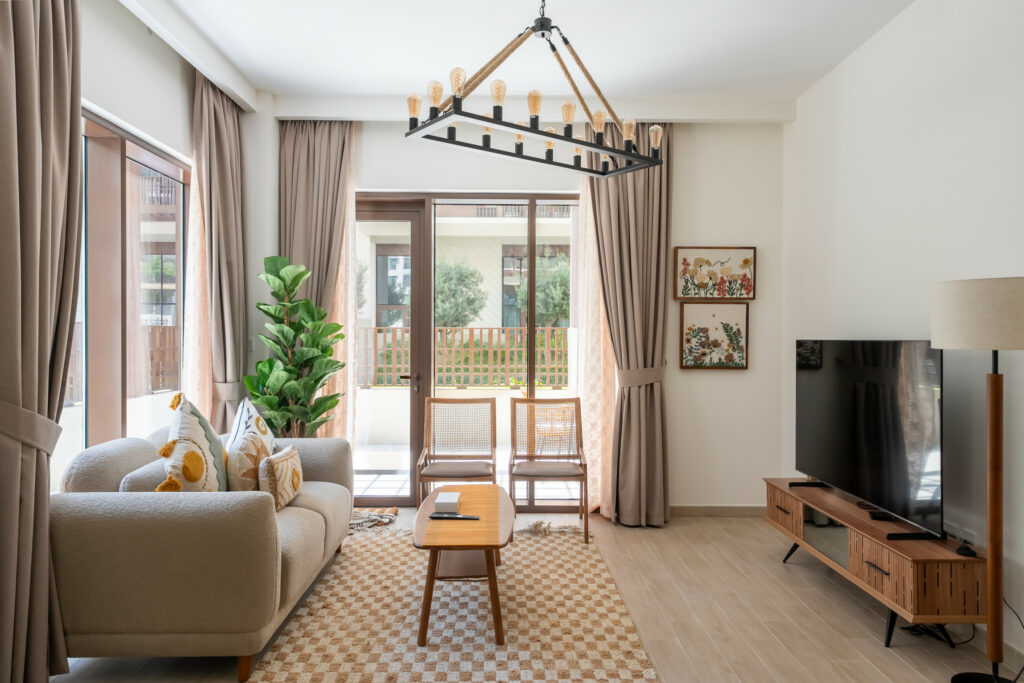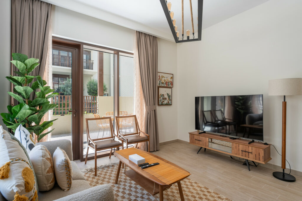 • Tranquil living space with comfortable seating and smart TV
