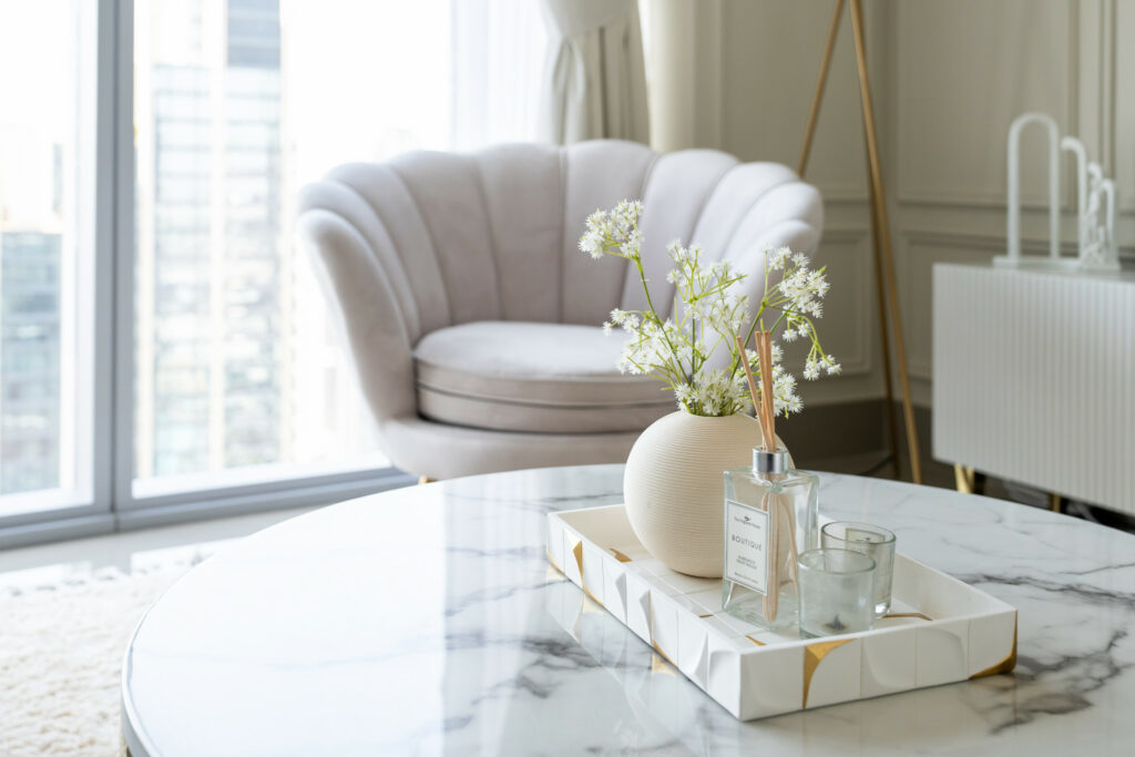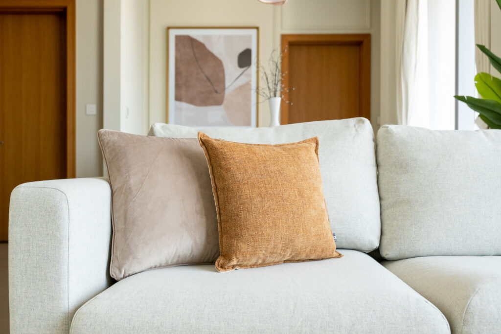 • Elegant and bright living space with comfortable sofa and smart TV