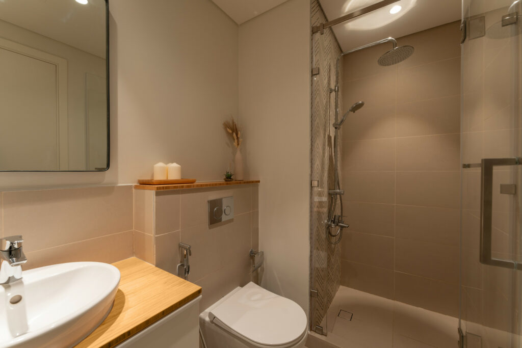 • Spacious bathroom with shower