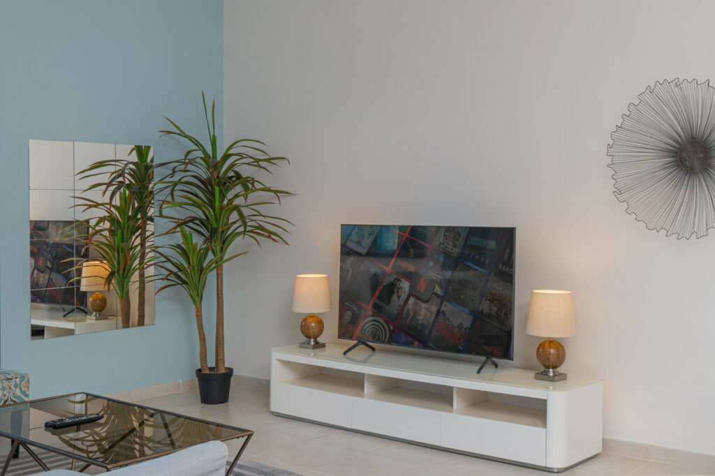 • Bright living space with cosy seating and Smart TV
