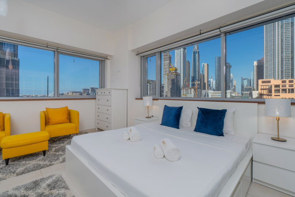 This well-planned home feels more like a one-bedroom, offering generous space, contemporary furnishings, and a relaxed city atmosphere. Ideal for guests who value room to unwind, it’s perfectly located near Downtown Dubai, the Dubai Canal, and key business and lifestyle destinations.