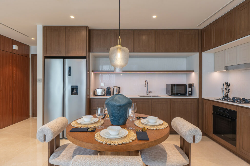 This premium holiday home offers modern elegance with stunning finishes, floor-to-ceiling windows, and charming views of the sea and city skyline. With direct private beach access and world-class amenities, it’s the perfect retreat for guests seeking both relaxation and luxury.