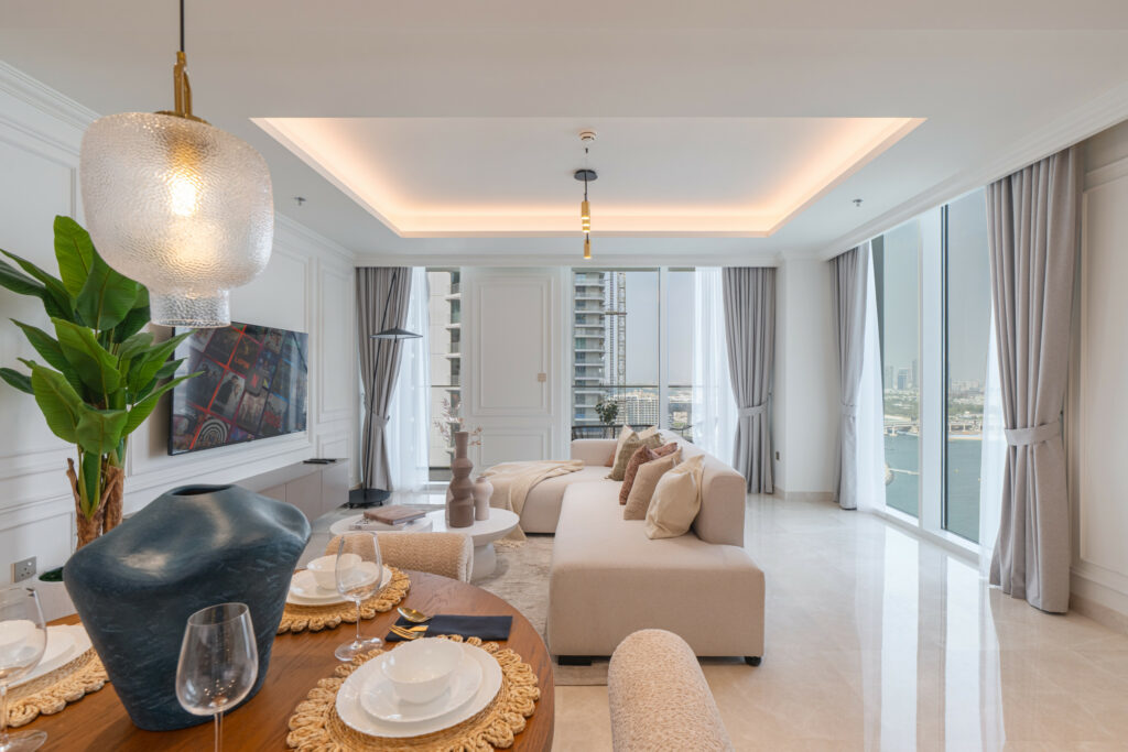 • Location – Prime beachfront address in Emaar Beachfront, Dubai Harbour, offering direct access to private beach and proximity to Dubai Marina, Palm Jumeirah, and Sheikh Zayed Road.