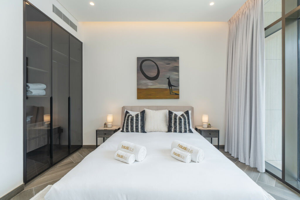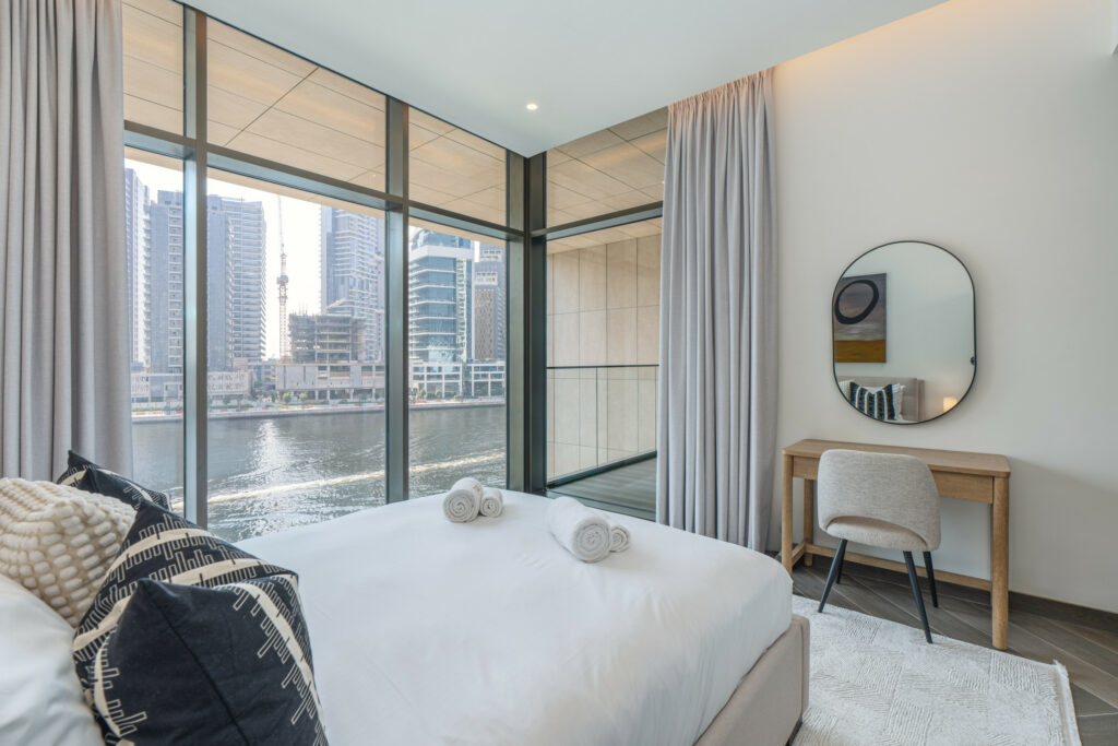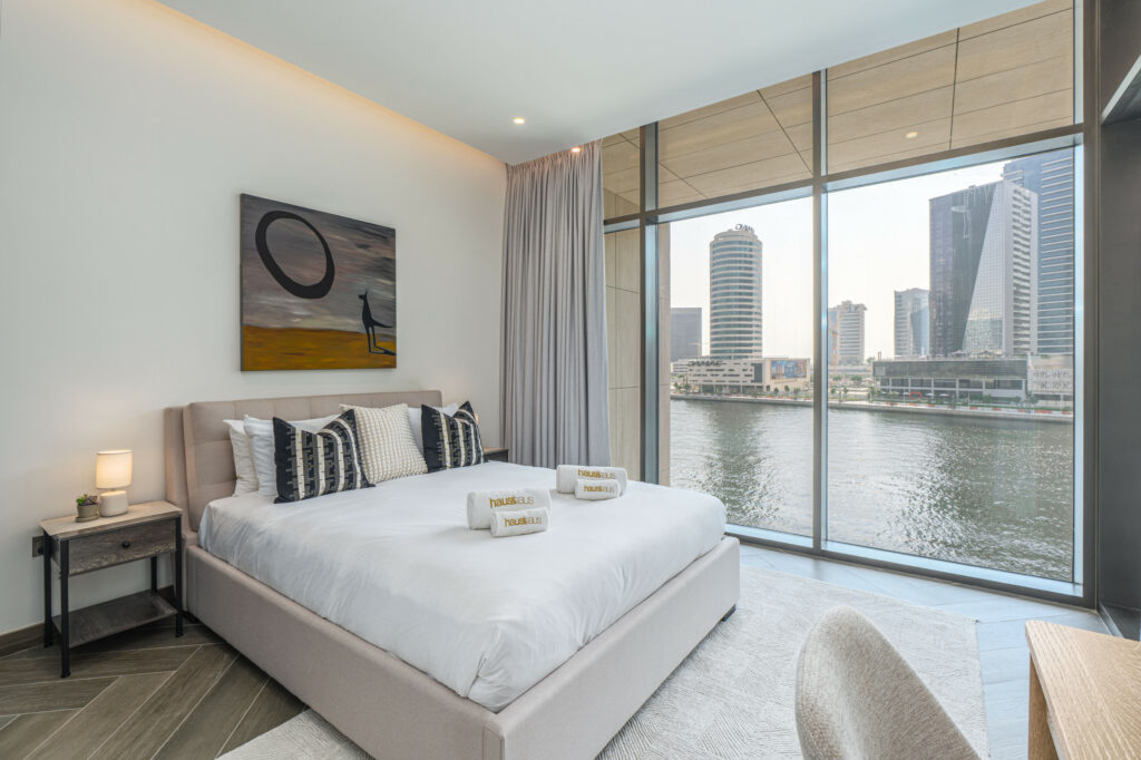 Designed for luxury and comfort, this stunning residence boasts double-height ceilings, stylish interiors, and uninterrupted views of the shimmering Dubai Canal. Every corner reflects a refined life style, making it the perfect escape for guests who appreciate exclusivity, comfort, and iconic city views.