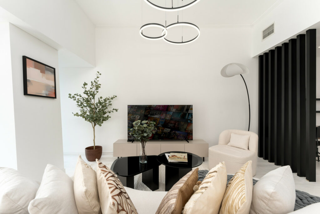 • Deluxe living area with comfortable seating and smart TV