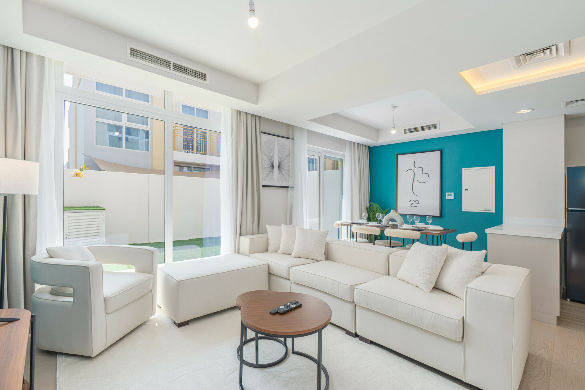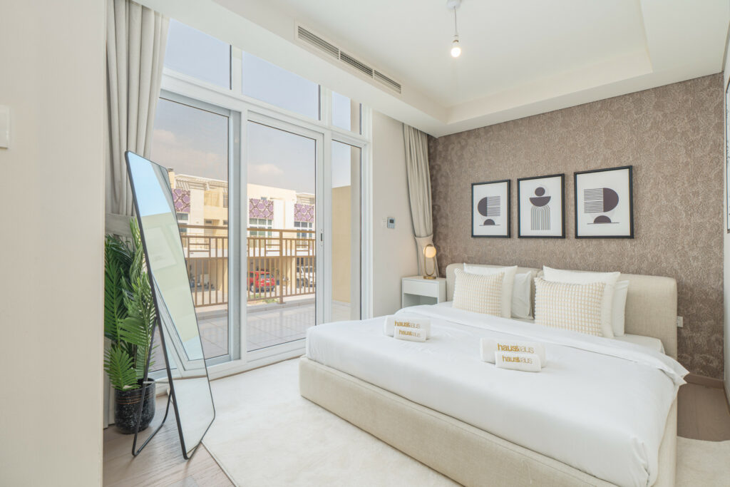 haus & haus holiday is pleased to present this welcoming 3-Bedroom Villa in the serene Aquilegia cluster of DAMAC Hills 2. Designed for families and groups looking for comfort and space, this villa offers a relaxing escape and modern community amenities.