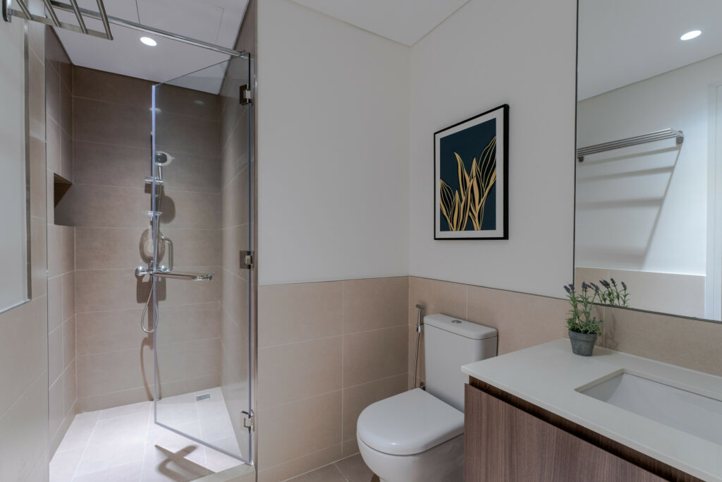 • Spacious bathroom with shower