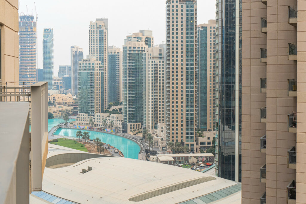 • High-floor location with pool and partial Dubai Fountain views