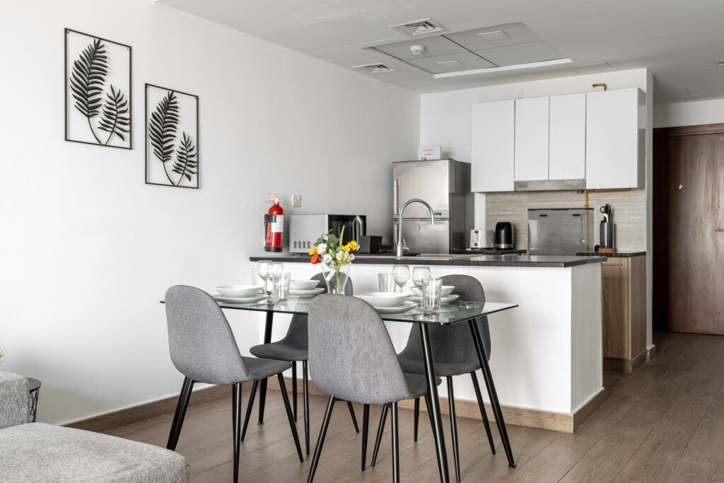 • Dining table that comfortably seats 4 people