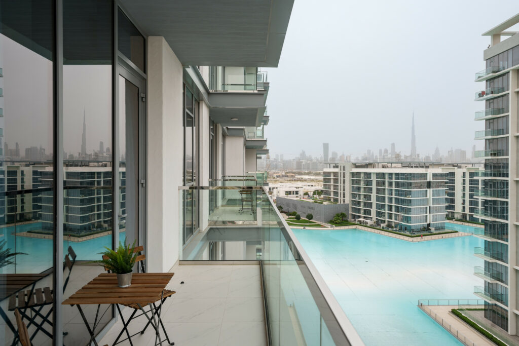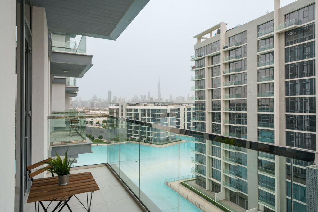 • Charming lagoon and Burj Khalifa skyline view from the balcony