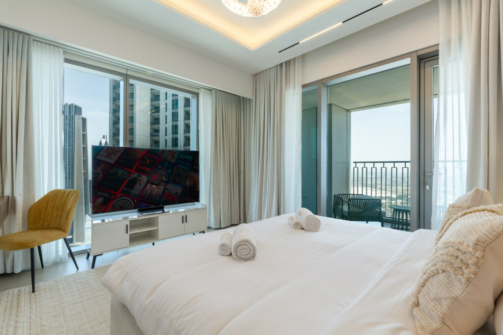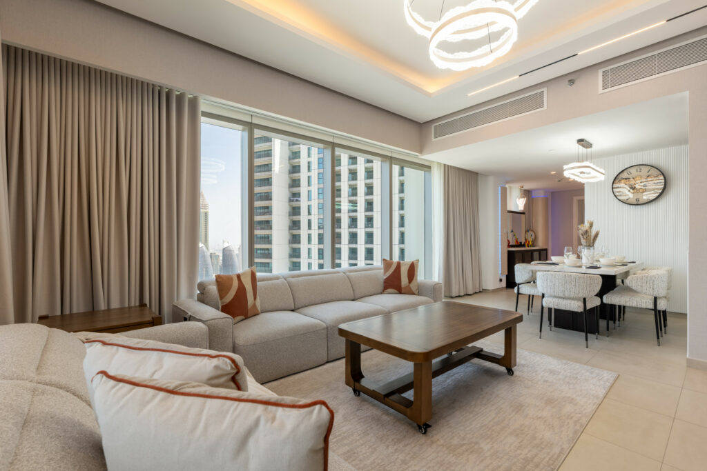 Enter a world of refined luxury in this exquisite 3-bedroom holiday residence, where stylish interiors blend seamlessly with sweeping, iconic views — including the magnificent Burj Khalifa. Designed for an unforgettable stay, this elegant home offers a perfect harmony of comfort, sophistication, and proximity to world-class amenities, elevating its undeniable charm.