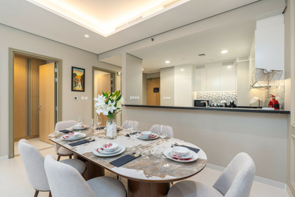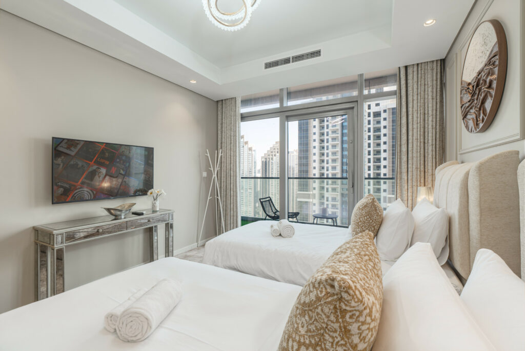 This high-floor residence offers a perfect balance of elegance, space, and five-star living—ideal for guests seeking luxury, comfort, and world-class views in the heart of Dubai.
