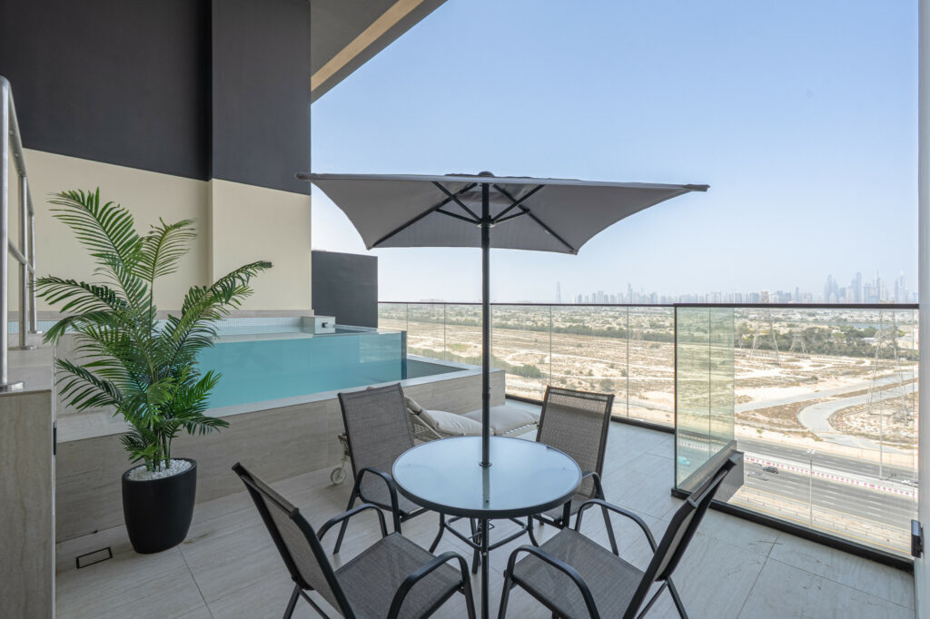 haus & haus holiday is pleased to present this brand new 2 Bedroom Apartment in Binghatti Onyx, Jumeirah Village Circle. Perched on a high floor, this stunning retreat boasts sleek, modern interiors and a private balcony with its own pool—perfect for unwinding while soaking in the breathtaking...
