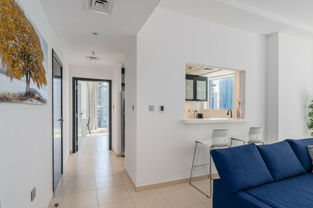 Located in the higher floor, this cosy holiday home offers a beautiful view of the community and the marina. Dubai Marina is well known for its vibrant waterfront attractions such as bars, restaurants, cafes, and other entertainment options including its proximity to JBR beach.
