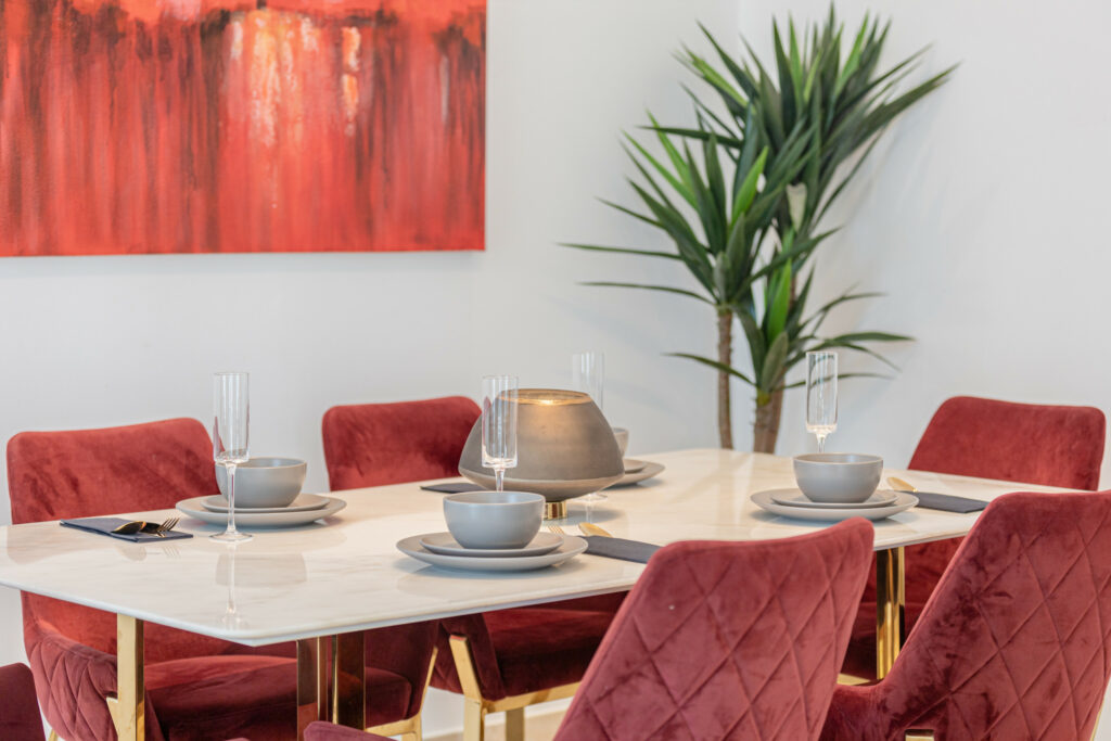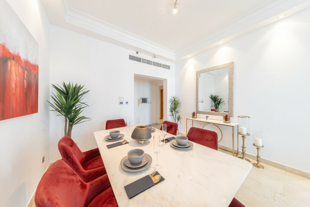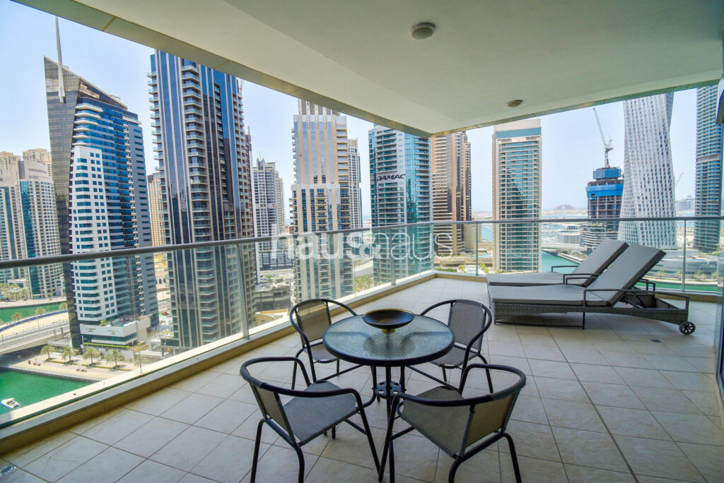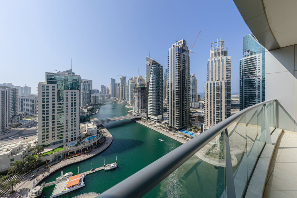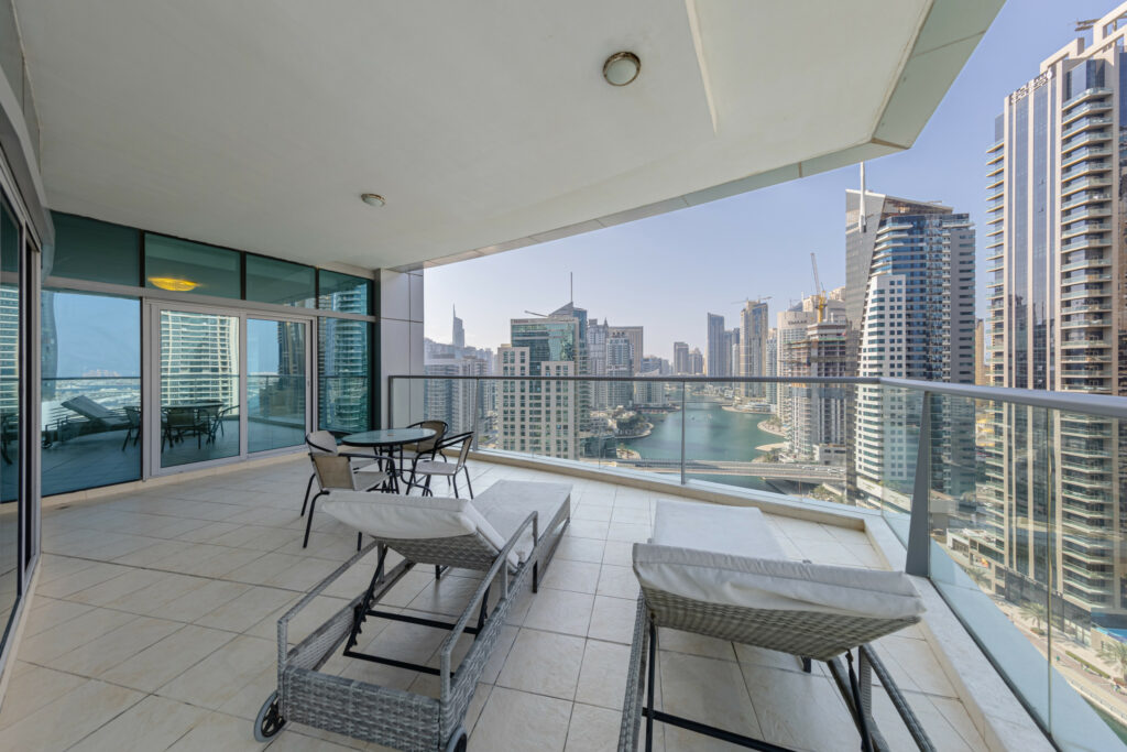 • Expansive balcony with outdoor dining area, overlooking the stunning Marina