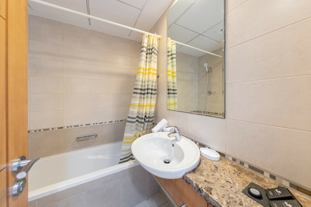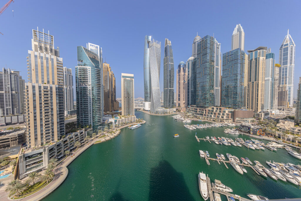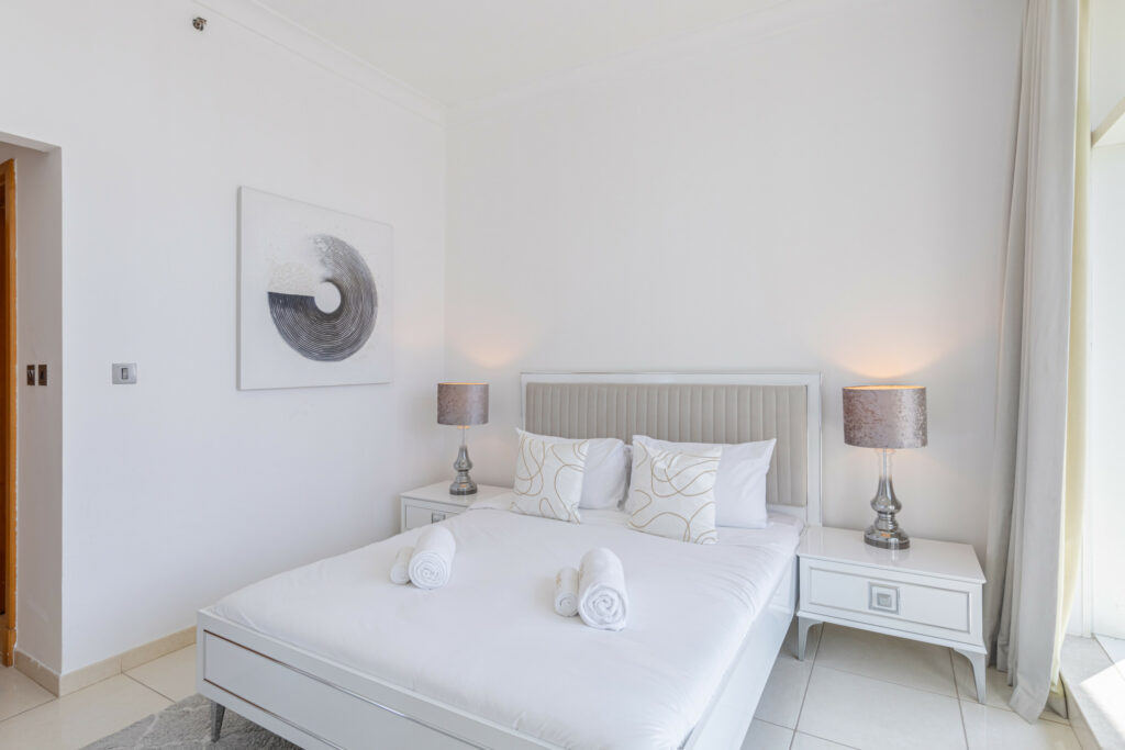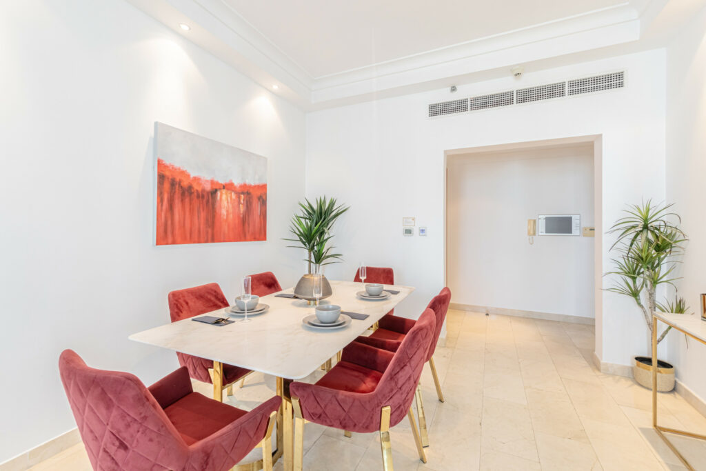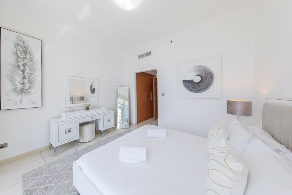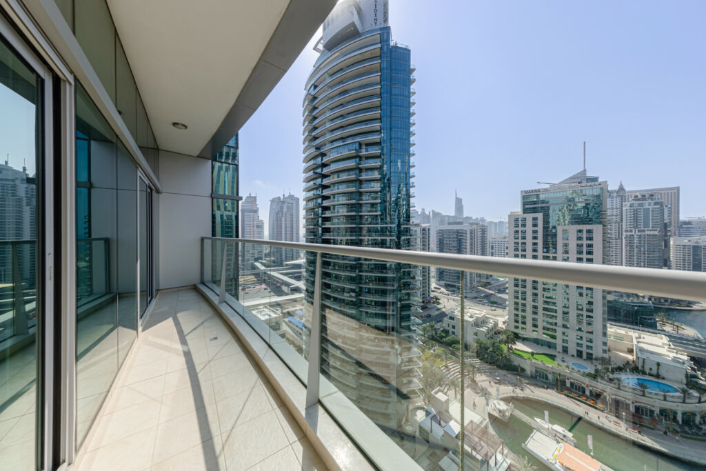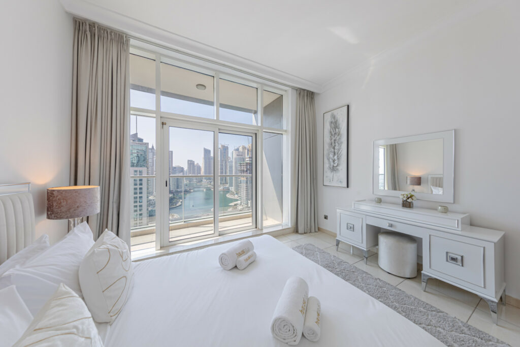 The apartment features a generously sized balcony, perfect for al fresco dining or simply unwinding while soaking in the breathtaking views of the yacht-dotted marina.
