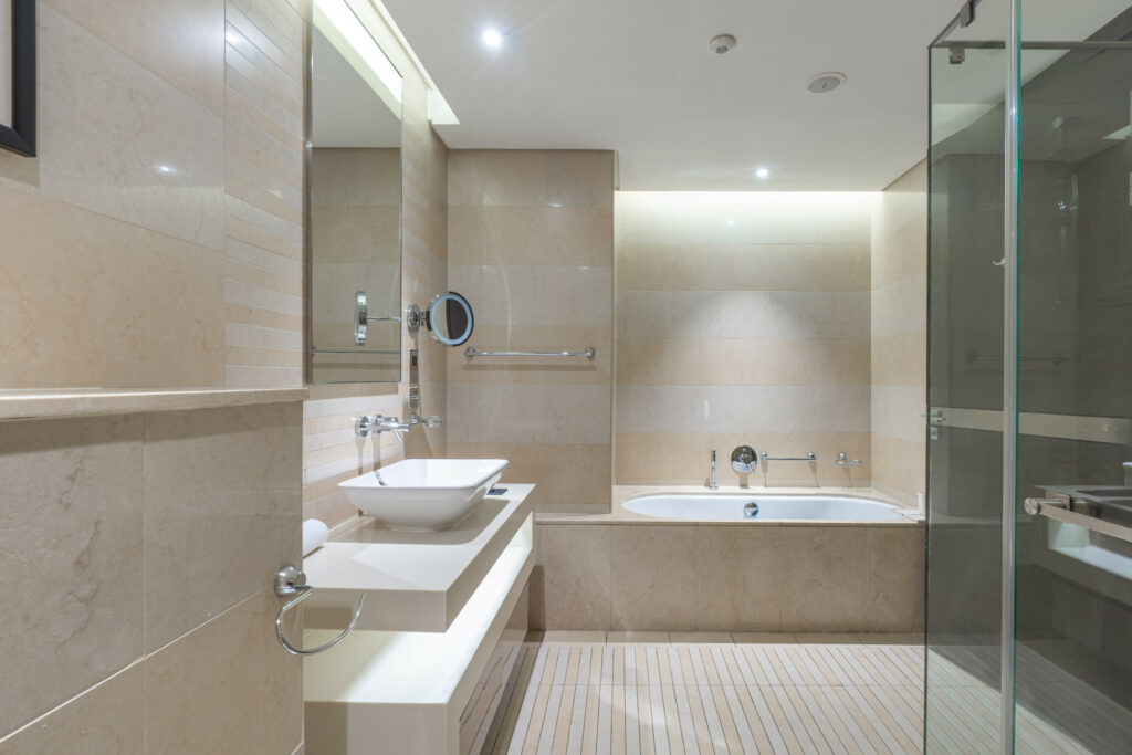 • Sleek bathroom with shower