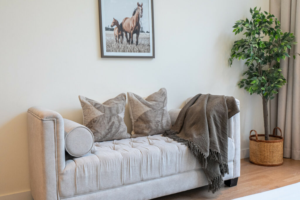 • Bright and airy living room with smart TV and comfortable seating