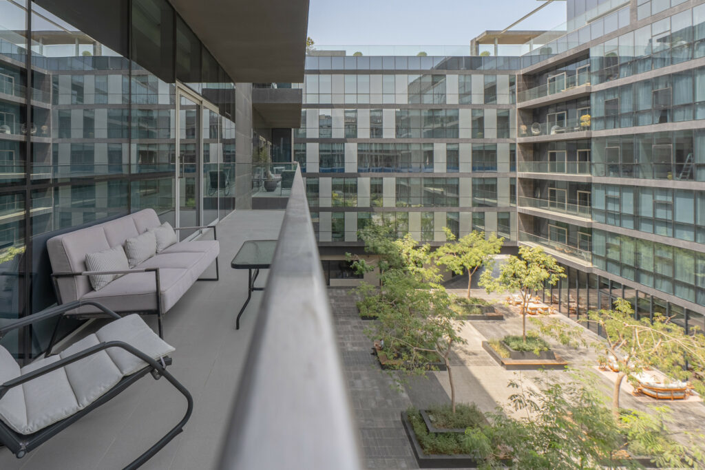 • Balcony overlooking a serene courtyard