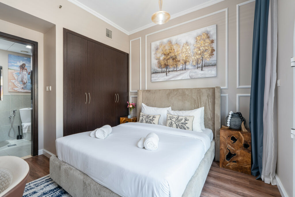 haus & haus holiday is pleased to offer this 2 Bedroom Apartment in Studio One situated in Dubai Marina, a bustling neighbourhood in Dubai.Highlights:• Lovely 2 Bedroom apartment suite• Cozy living space with plush seating and a smart TV• 1 Ensuite bathrooms, along with 1 guest toilet• M...