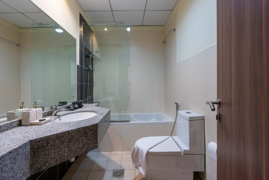 • Bathroom with bathtub, guest toilet