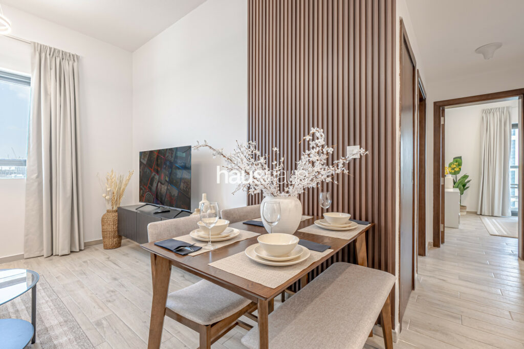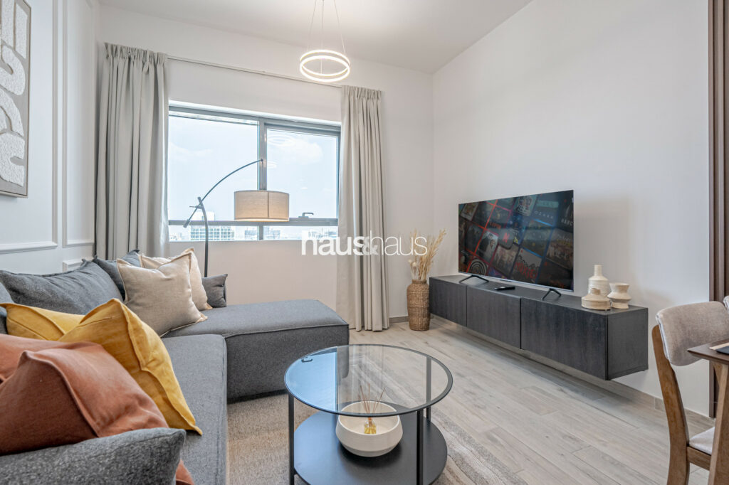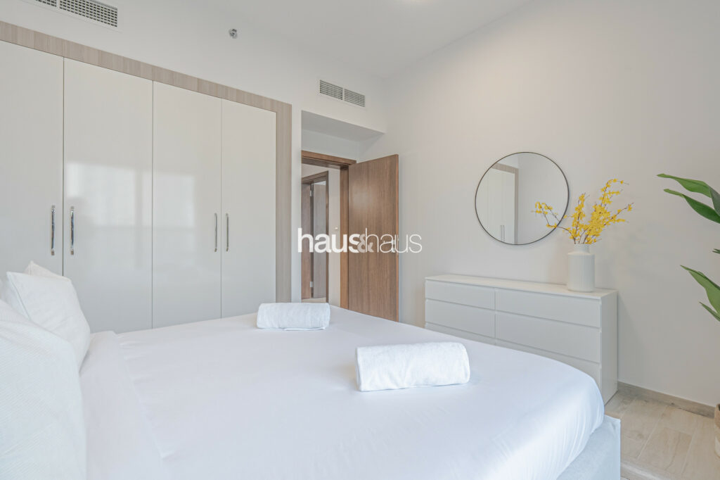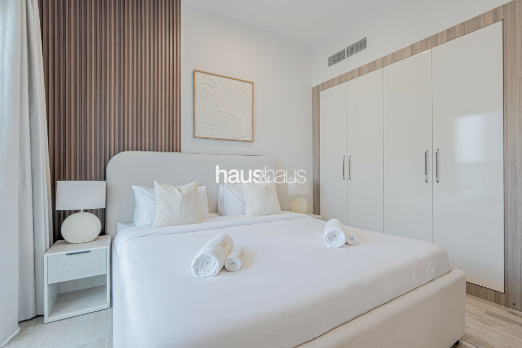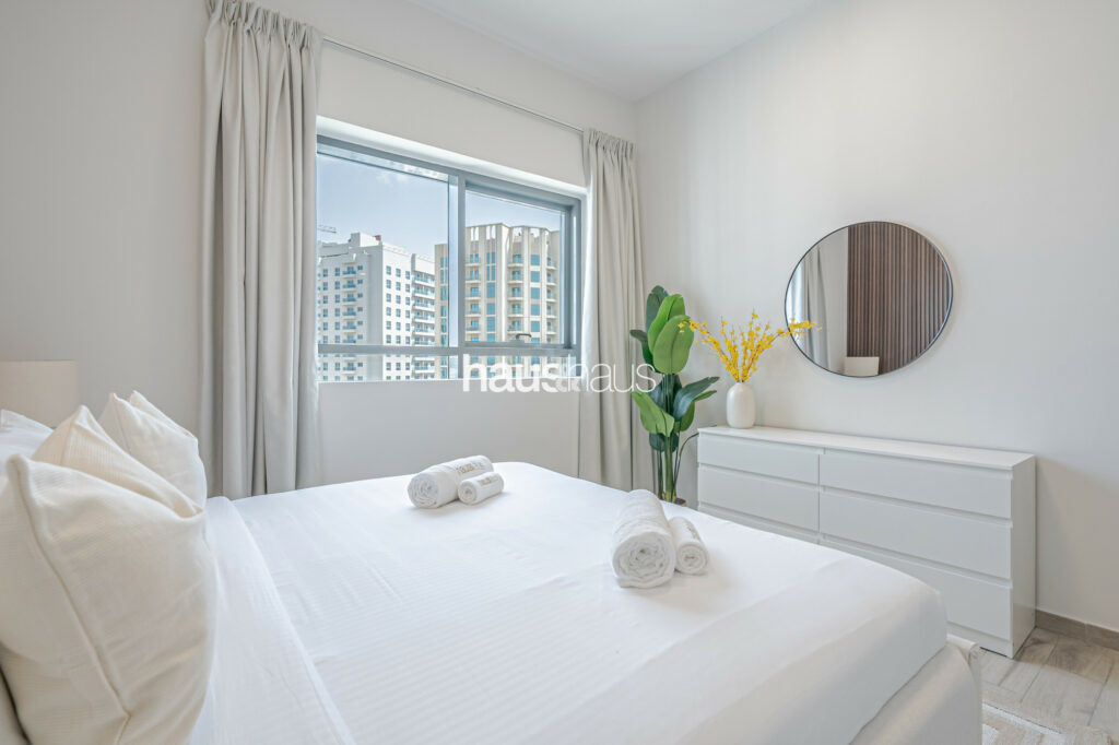 haus and haus holiday is pleased to offer this charming 2 Bedroom Apartment in RMT Residence, located in the wonderfully planned family-friendly neighbourhood of Jumeirah Village Circle (JVC). Step into this delightful holiday home, where chic interiors and a serene park view create a perfect blend of comfort and convenience for your stay.