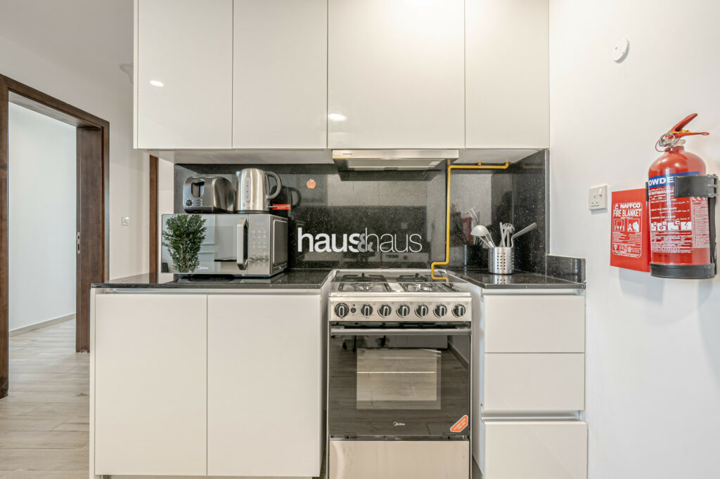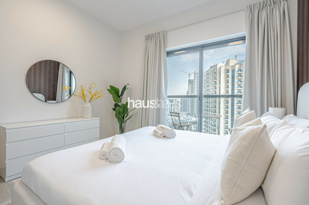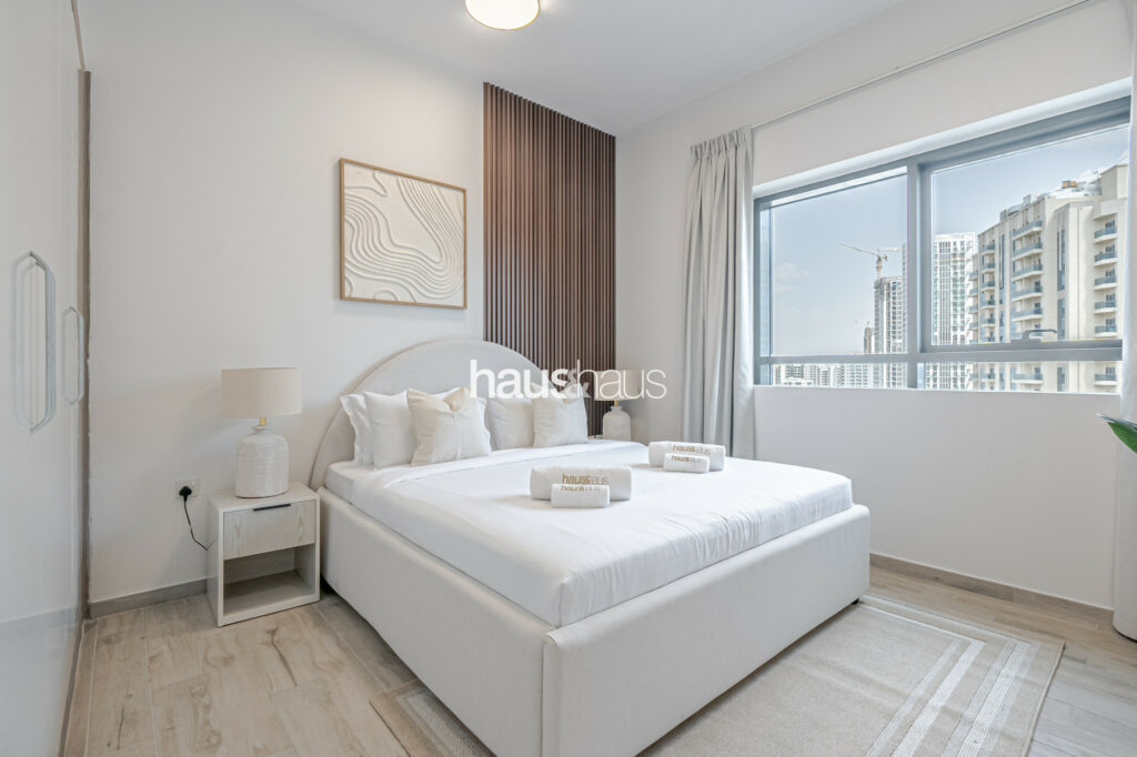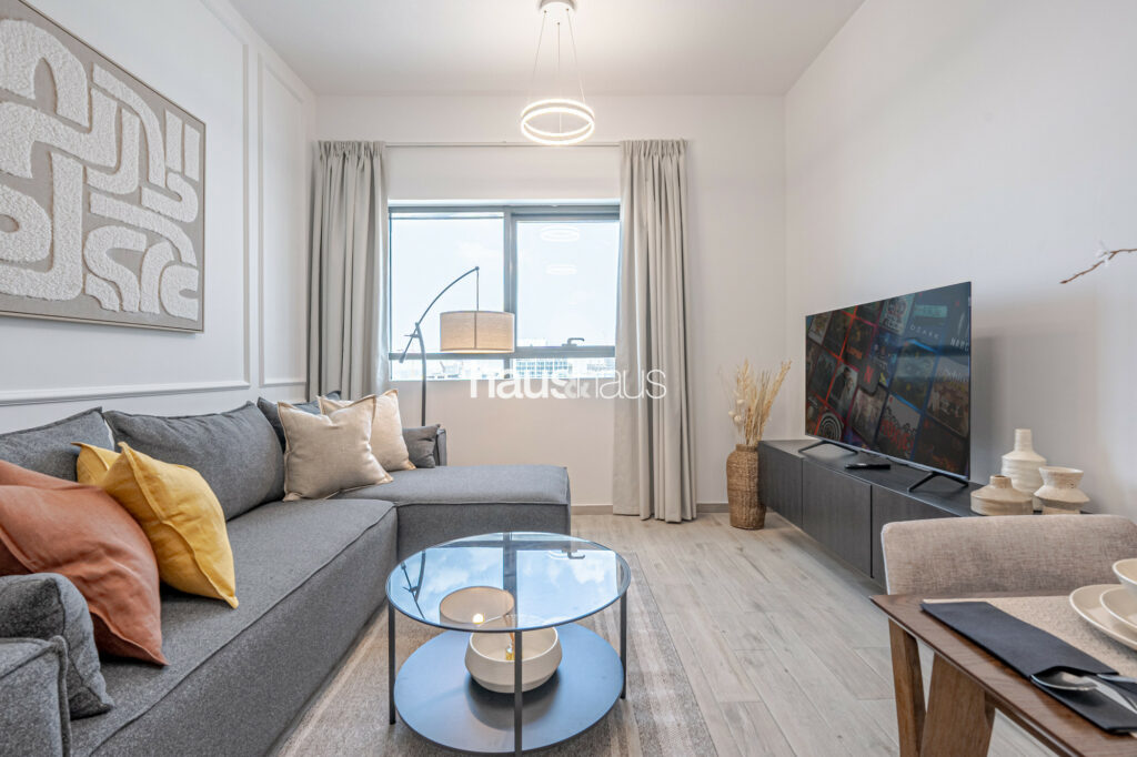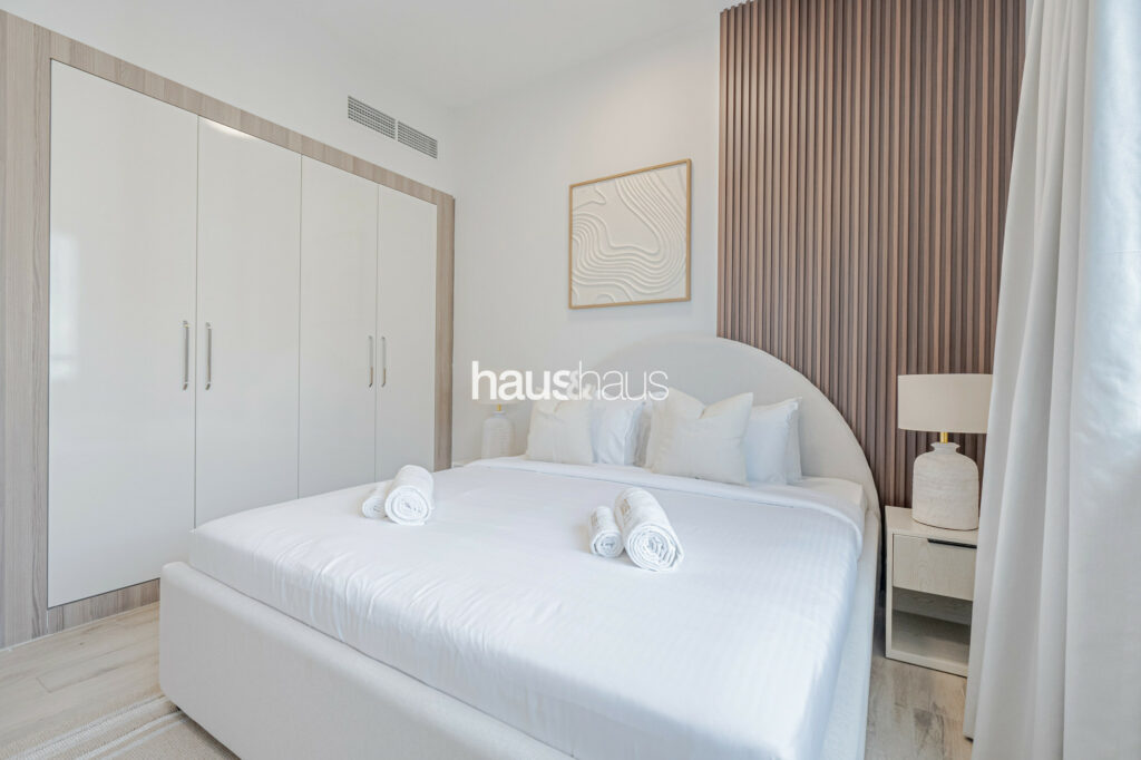 haus and haus holiday is pleased to offer this charming 2 Bedroom Apartment in RMT Residence, located in the wonderfully planned family-friendly neighbourhood of Jumeirah Village Circle (JVC). Step into this delightful holiday home, where chic interiors and a serene park view create a perfect blend of comfort and convenience for your stay.