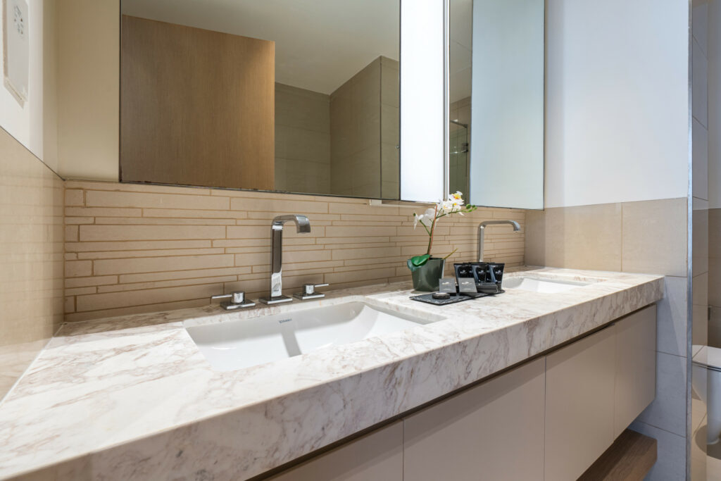 • 1 Bathroom with bathtub with double wash basin, guest toilet