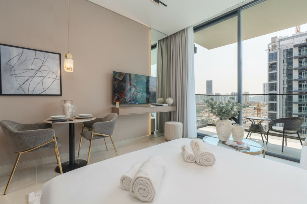 haus & haus holiday is delighted to offer this chic Studio apartment in Binghatti Azure, Jumeirah Village Circle.