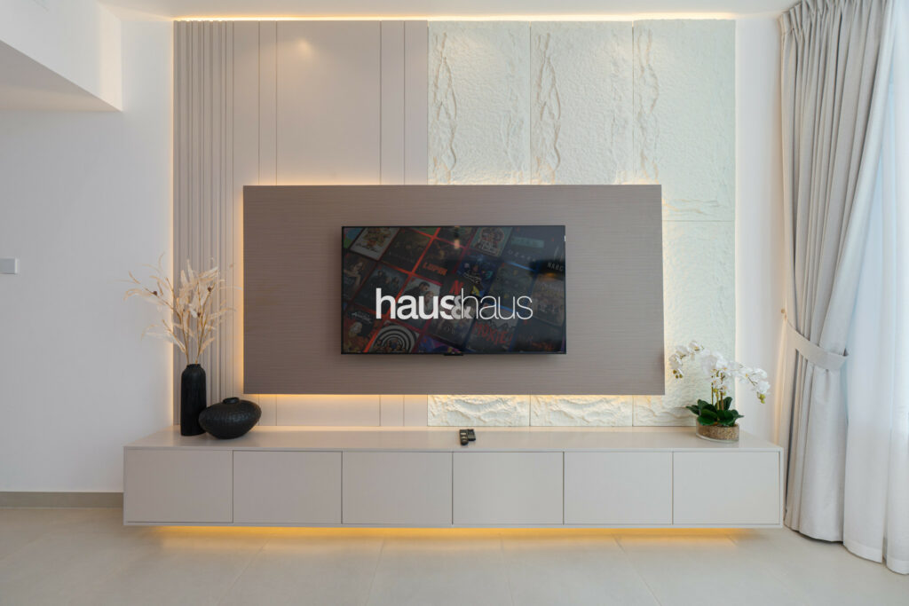 • Stylish living area with seating and Smart TV