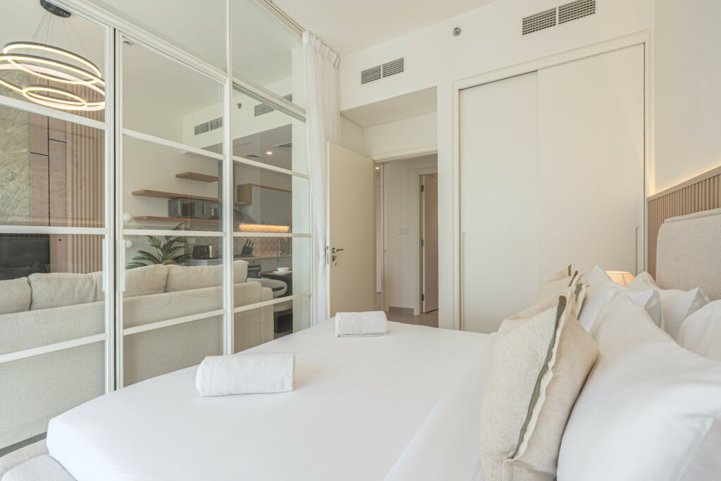 haus & haus holiday is delighted to present this stylish 1 Bedroom Apartment in Mass Residences, a brand-new development in the heart of Jumeirah Village Circle.Perfect for guests seeking a modern and comfortable stay, this home combines fresh interiors with practical amenities for an easy, rela...