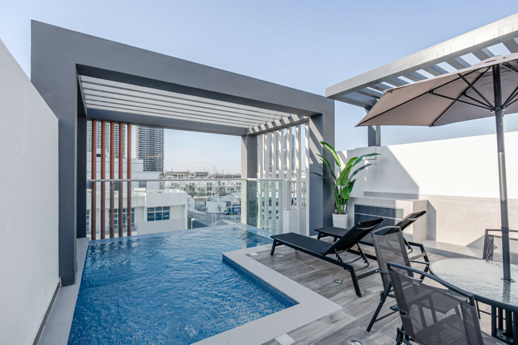 Step into your premium and carefully designed holiday home that brings you a unique sense of exclusivity with a private rooftop pool, an elevator, and large balconies.
