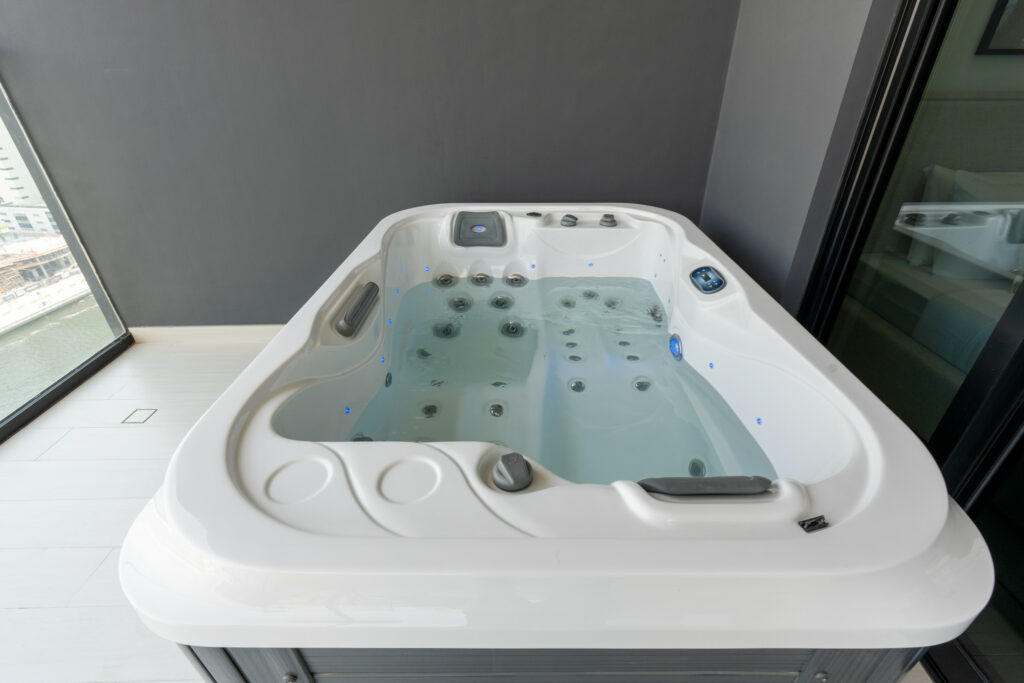 Enjoy the perfect escape in this modern holiday home, thoughtfully designed with sleek contemporary furnishings and a balcony that boasts a private jacuzzi. Ideal for relaxing after a day of adventure, this space offers a harmonious blend of style and comfort. Conveniently set in a lively business district, you’ll find shops, cafés, and restaurants just moments from your door.
