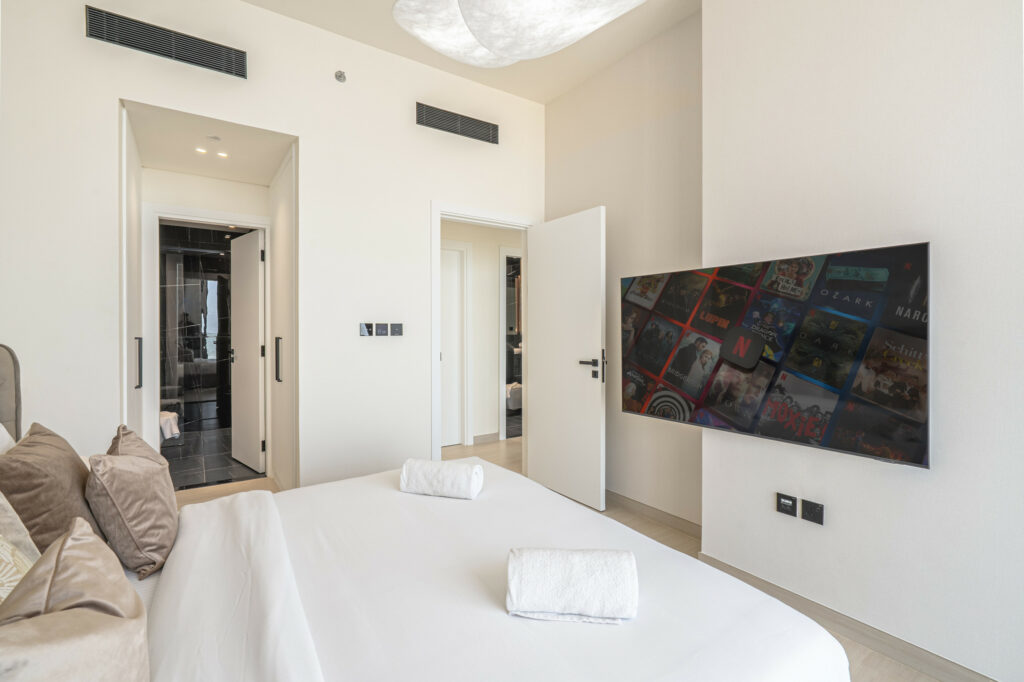 haus & haus holiday is delighted to present this contemporary 2 Bedroom Apartment in Sadaf 6, Jumeirah Beach Residences. This holiday home offers an exceptional experience, combining a stylish and inviting ambiance to unforgettable stay. It is conveniently located just steps from a pristine sand...